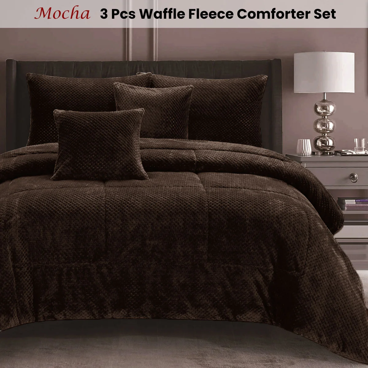This amazingly Waffle Fleece Mocha 3 Pcs Warm Cozy Comforter Set by Ramesses will be your newest love! The set is presented in a platinum colorway and is perfect for those colder winter months. The unique design is made from soft waffle fleece - the perfect name for a fabric so cozy, soft and warm. You'll look forward to slipping into bed on even the coldest nights.