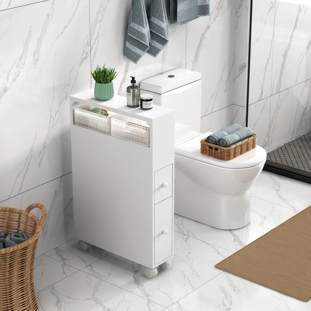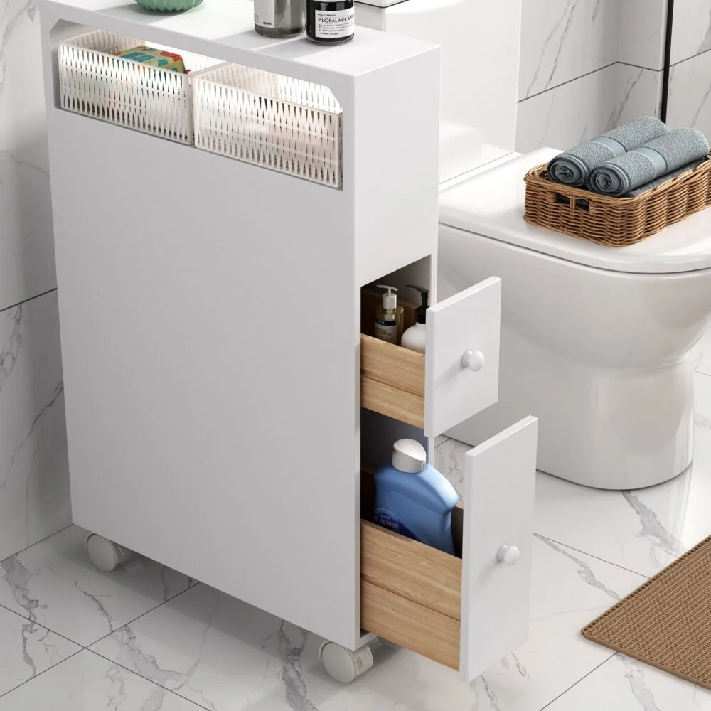 Convenient to store daily bathroom items- Shampoo, make-up, toilet paper, cleaning products, etc.