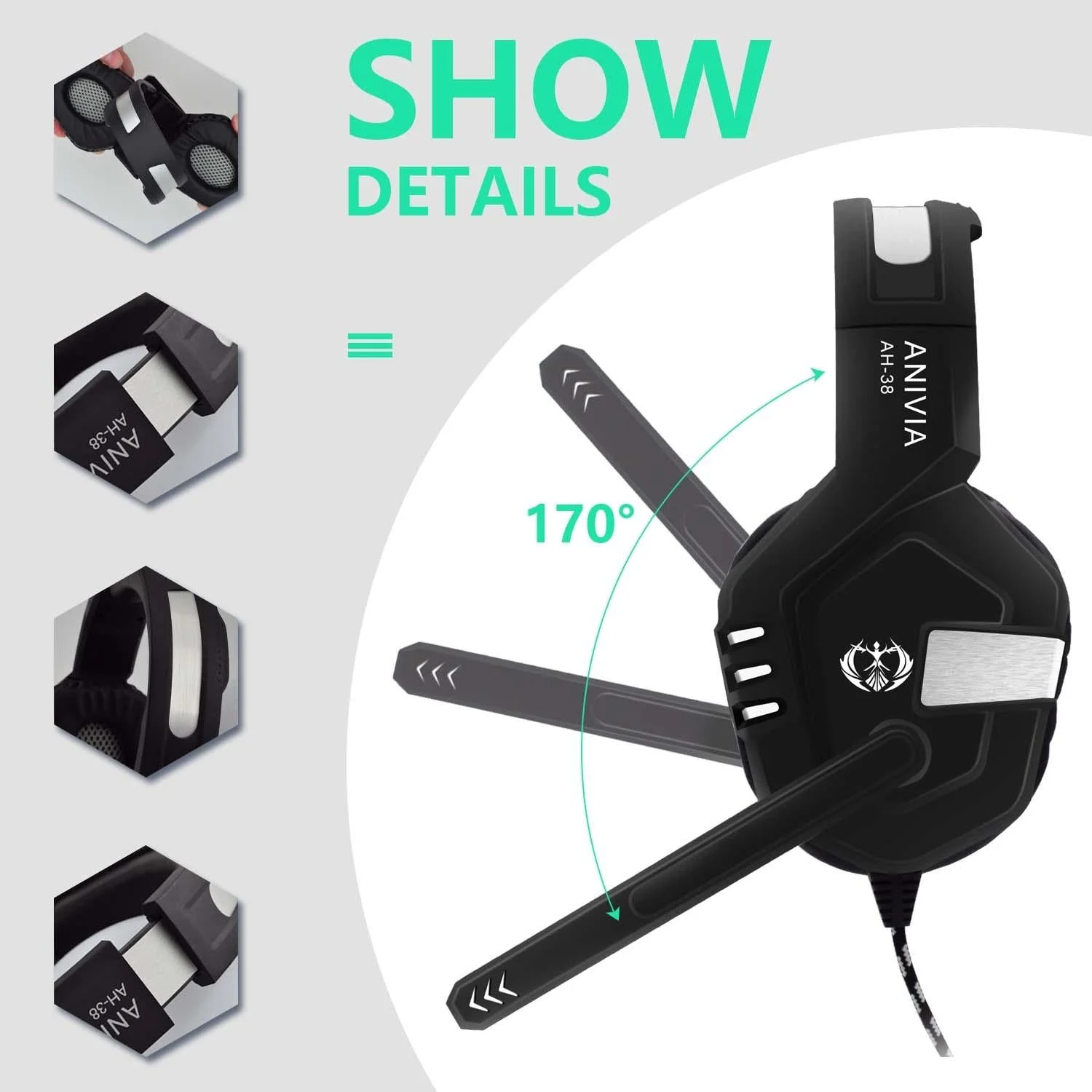 Omni-Directional Esports Headset 1.9M Length - White