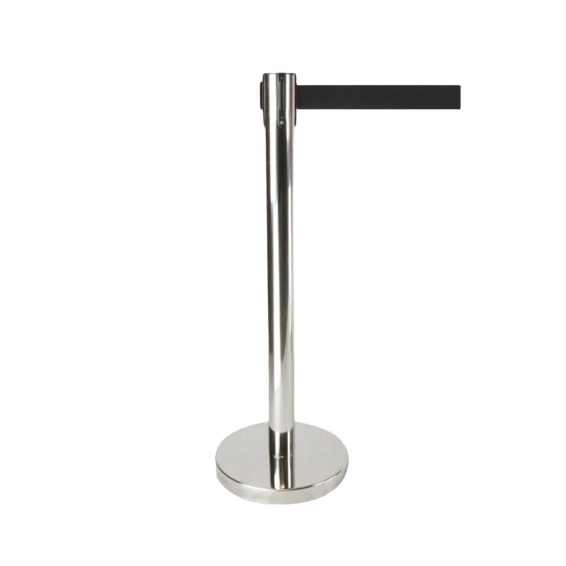 Stainless Steel construction Retractable Crowd Barriers | Silver Stand with Black Belt