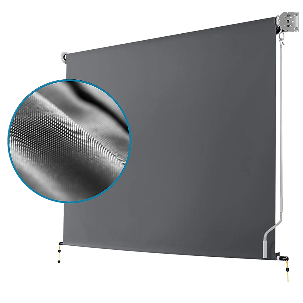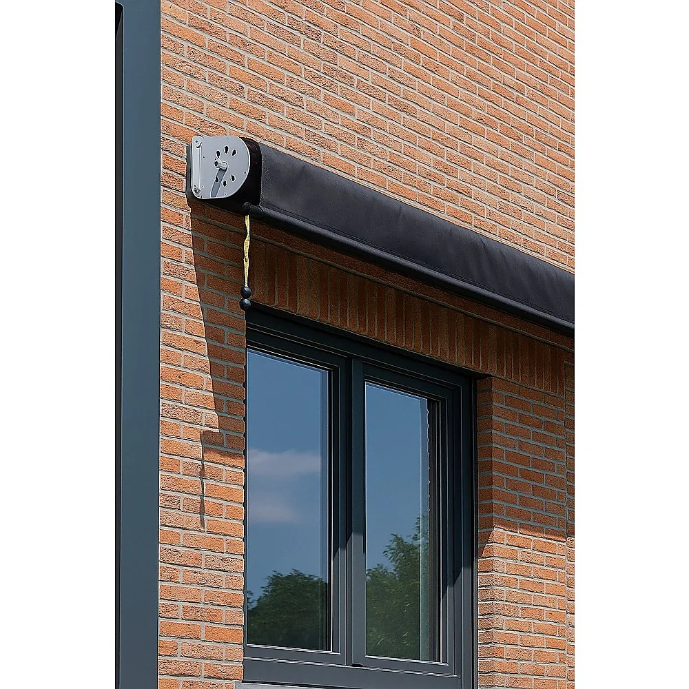 Designed in a neutral grey shade to blend in with today's subdued design schemes, this drop-down awning blends in with a large range of home colour palettes.