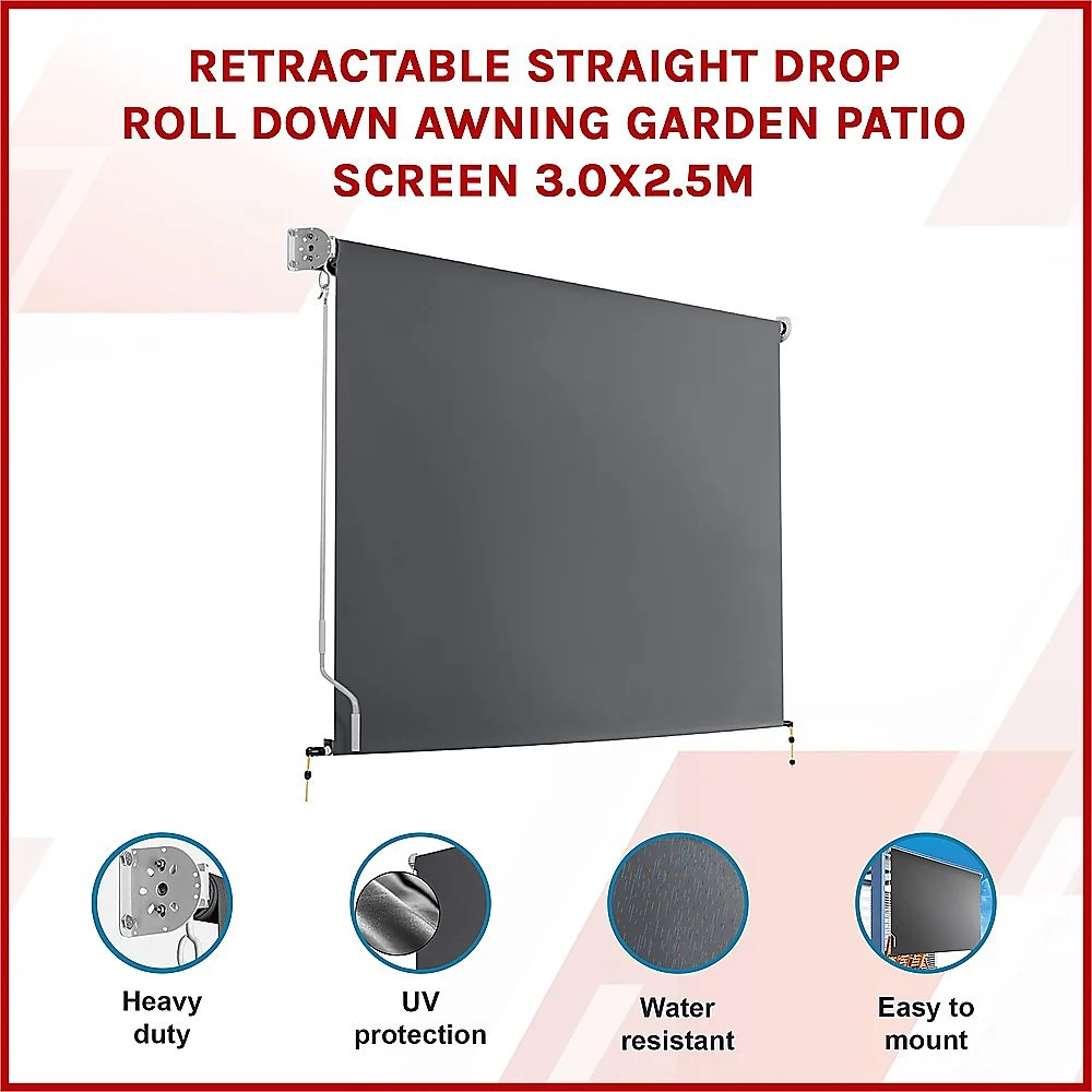 If the intense sun during hot summers fades out your finest furniture or makes entertaining on the patio an unpleasant experience, Bariloche's 3.0 m x 2.5 m retractable straight drop patio screen can solve this home décor challenge. Not only does it shield your home or patio from the sun's scorching rays, but it also shelters your home from winds, helping you stay warmer in the winter as well.