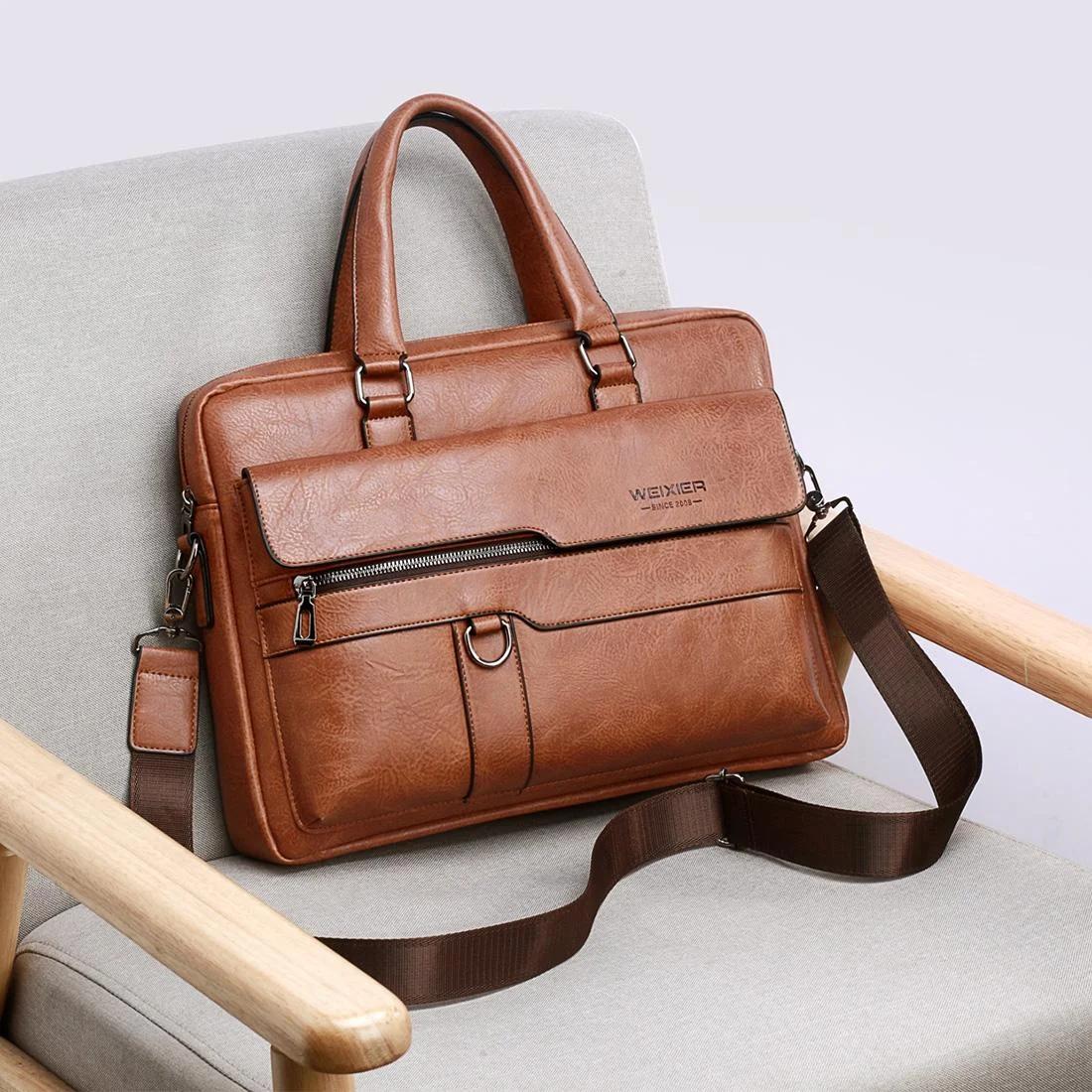 Khaki Modern Utility Tote Bag for Women - Large Capacity Shoulder Bag with Detachable Pouch for Work, School & Travel