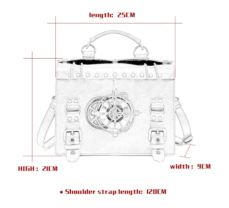 Please Note: The clock and gear embellishments on the front of the bag are for decorative purposes only and are non-functional.