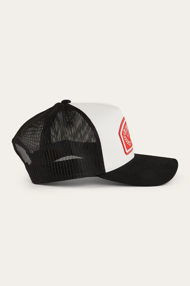 Every collection deserves a fresh addition now and then. Our Ringers Western country trucker caps capture the essence of our brand, embodying the spirit and tradition we stand for. With a premium-quality mesh back and metal eyelets, this cap offers optimal ventilation, ensuring all-day comfort on sun-soaked days. The structured front panel proudly showcases the iconic Ringers Western logo, a symbol of rugged heritage. A classic snapback closure provides an adjustable fit to suit most head sizes. Whether you’re hitting the open road, enjoying a local festival, or simply showing your brand pride, our trucker caps have you covered.