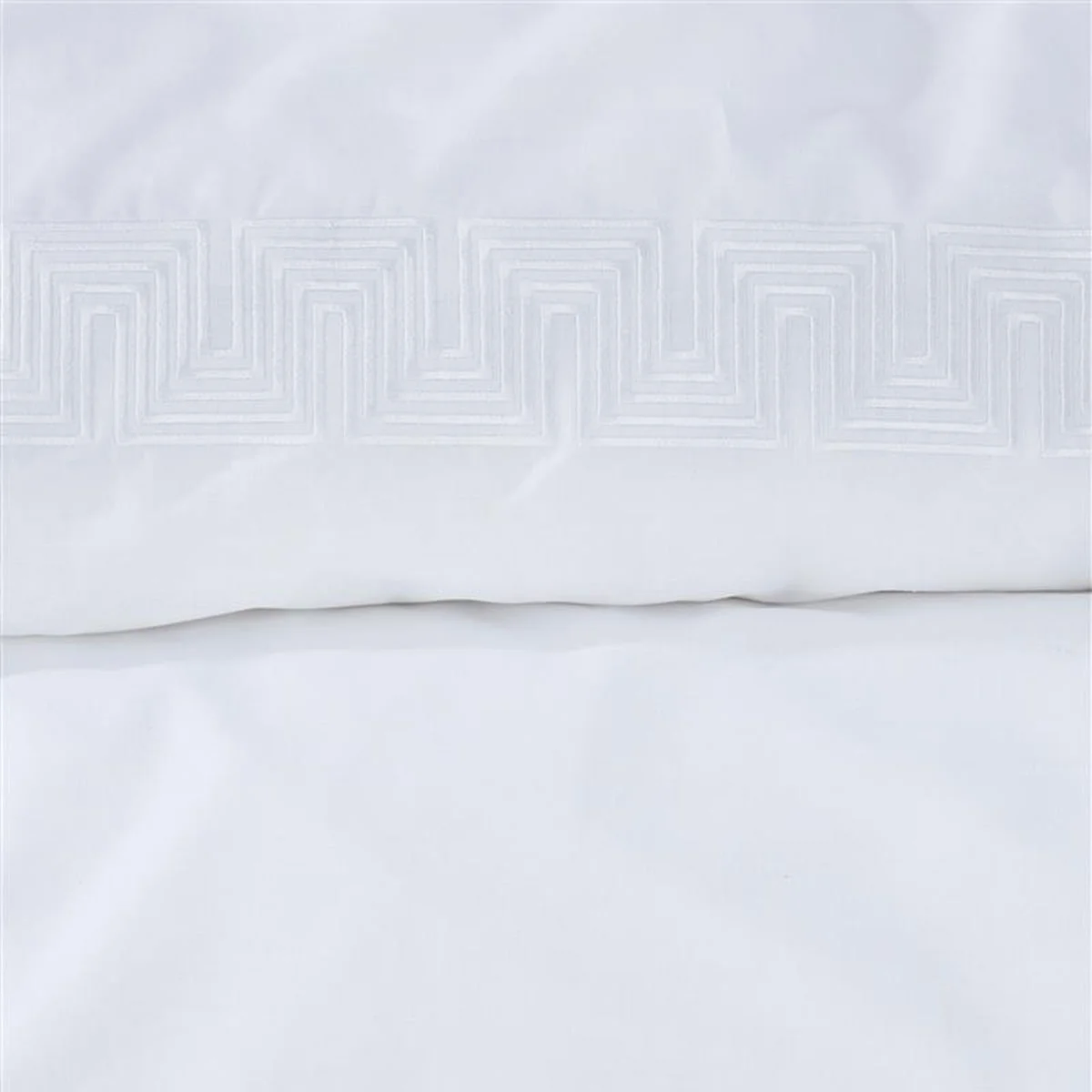 Chic, elegant, timeless, and sophisticated - they all describe the Elowen White Cotton Quilt Cover Set by Riviera Maison. This beautiful, white duvet cover features a narrow horizontal band with an embroidered geometric pattern on the front. The pillowcases are finished all around with a decorative oxford border with the same embroidered pattern. The quilt cover Elowen combines well with the Helena decorative cushion, which also features this geometric pattern. The quilt cover is packaged in a luxury gift box, including a gorgeously scented lavender sachet. The box is easily reusable. A great gift for yourself or someone else.