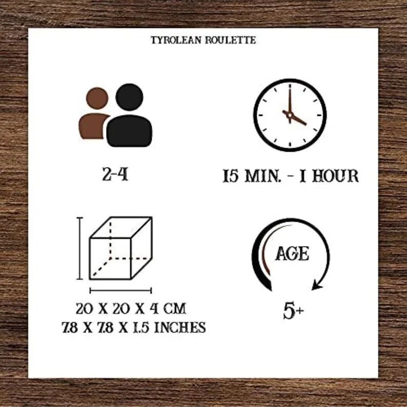 FUN board spinning game for 2-3-4 players: just spin the top and try get highest score A game for the whole family. Age: 6+ Dimensions: (w x l x h) : 19.5019.503.5 Teak/Samena wood. Handmade in Thailand Weight (g) : 390g