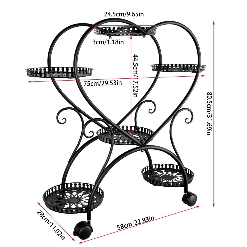 Rolling Metal Plant Stand Indoor Outdoor Garden Display Shelf