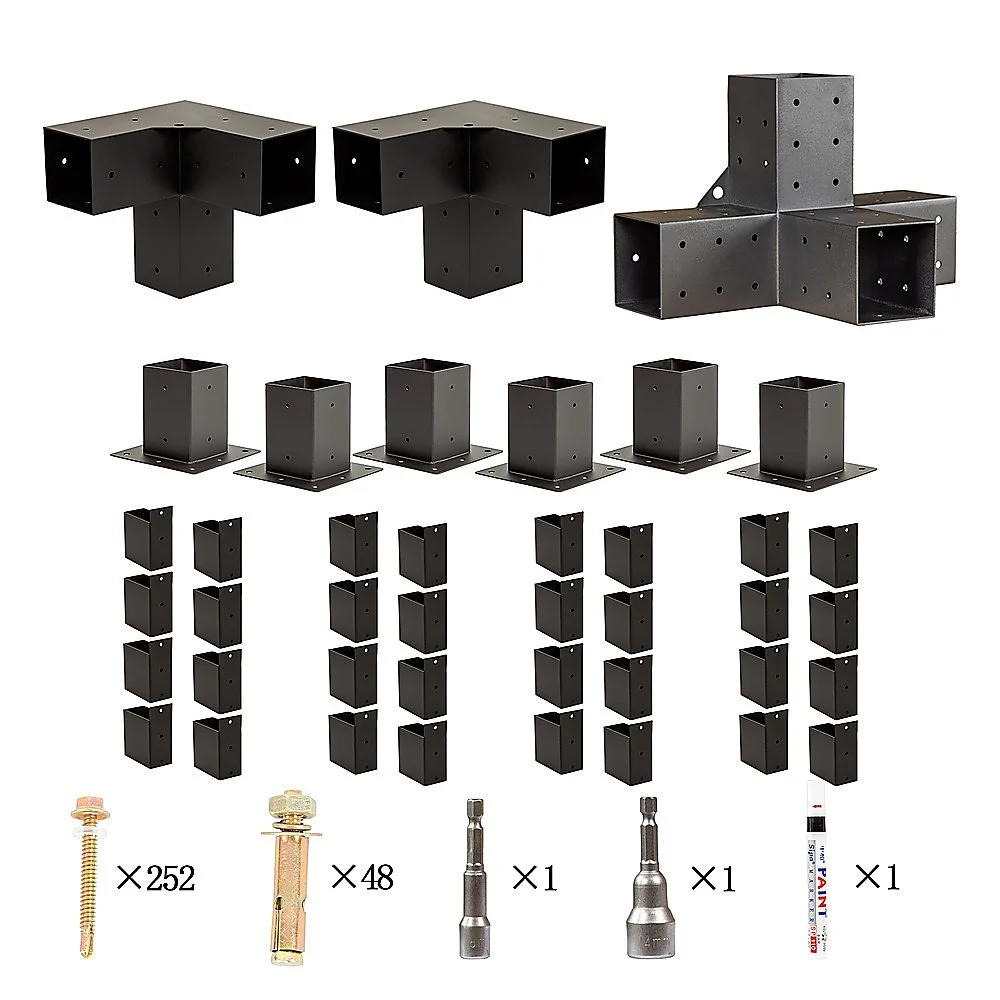 Each kit comes complete with all the hardware you need for installation, including screws and brackets, ensuring a hassle-free setup process. With everything included, you can have your new pergola up and running in no time, ready to enjoy outdoor gatherings and relaxation. (*Lumber not included.)
