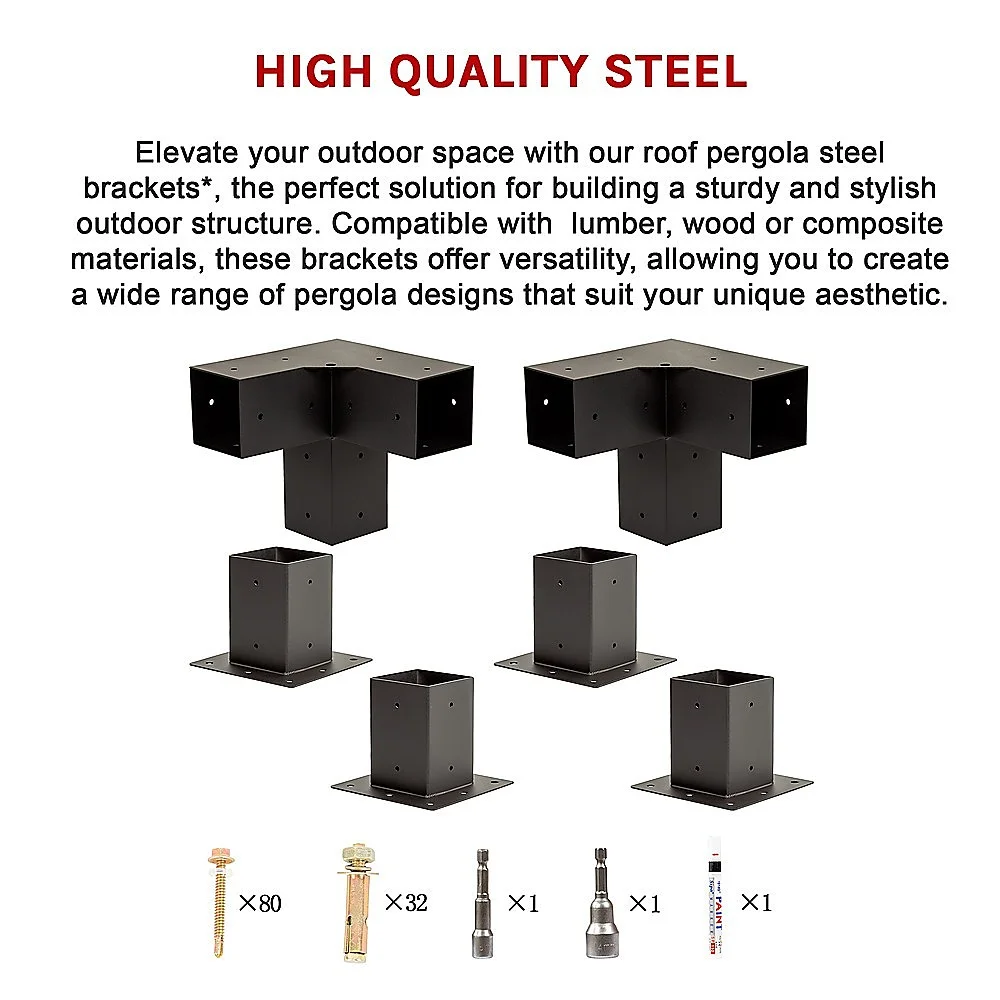 Experience superior quality with our pergola brackets*, crafted from high-quality steel to withstand the elements and stand the test of time. Their durable construction ensures reliability, even in challenging weather conditions, providing you with peace of mind and long-lasting performance.