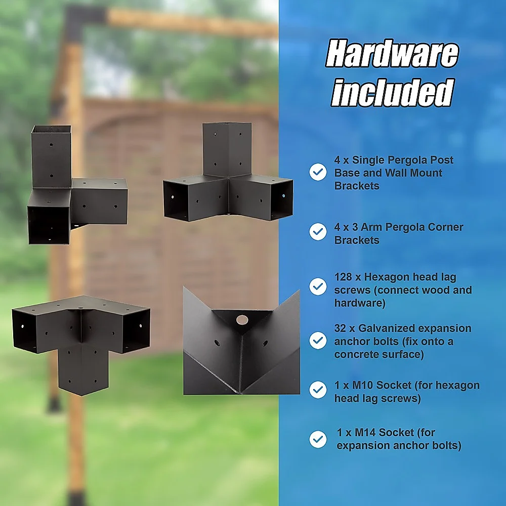 Each kit comes complete with all the hardware you need for installation, including screws and brackets, ensuring a hassle-free setup process. With everything included, you can have your new pergola up and running in no time, ready to enjoy outdoor gatherings and relaxation. (*Lumber not included.)