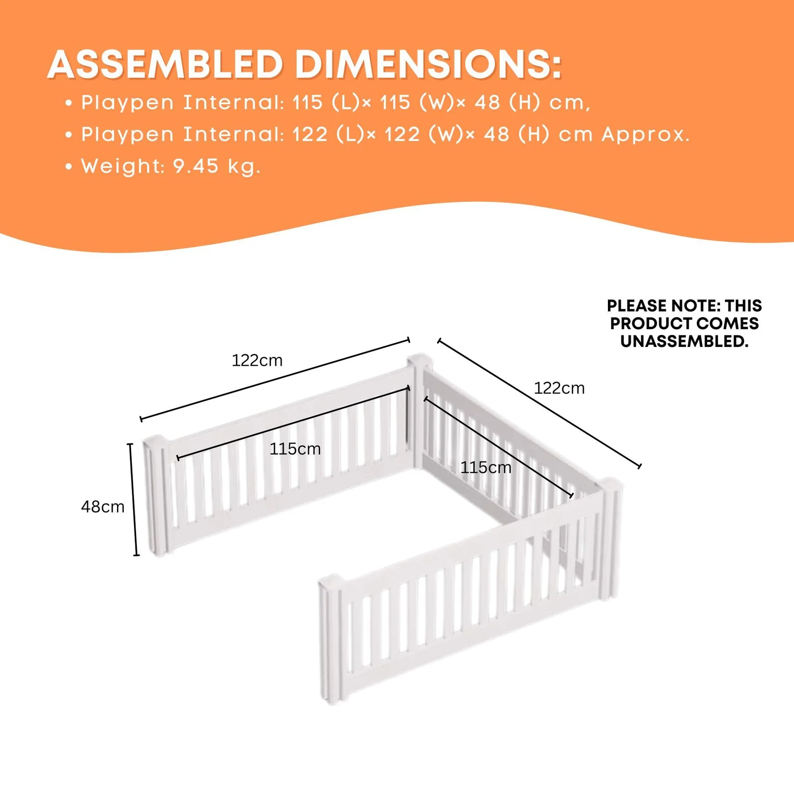 Package Includes: Modular PVC playpen panels, connectors, caps, screws, and instructions.