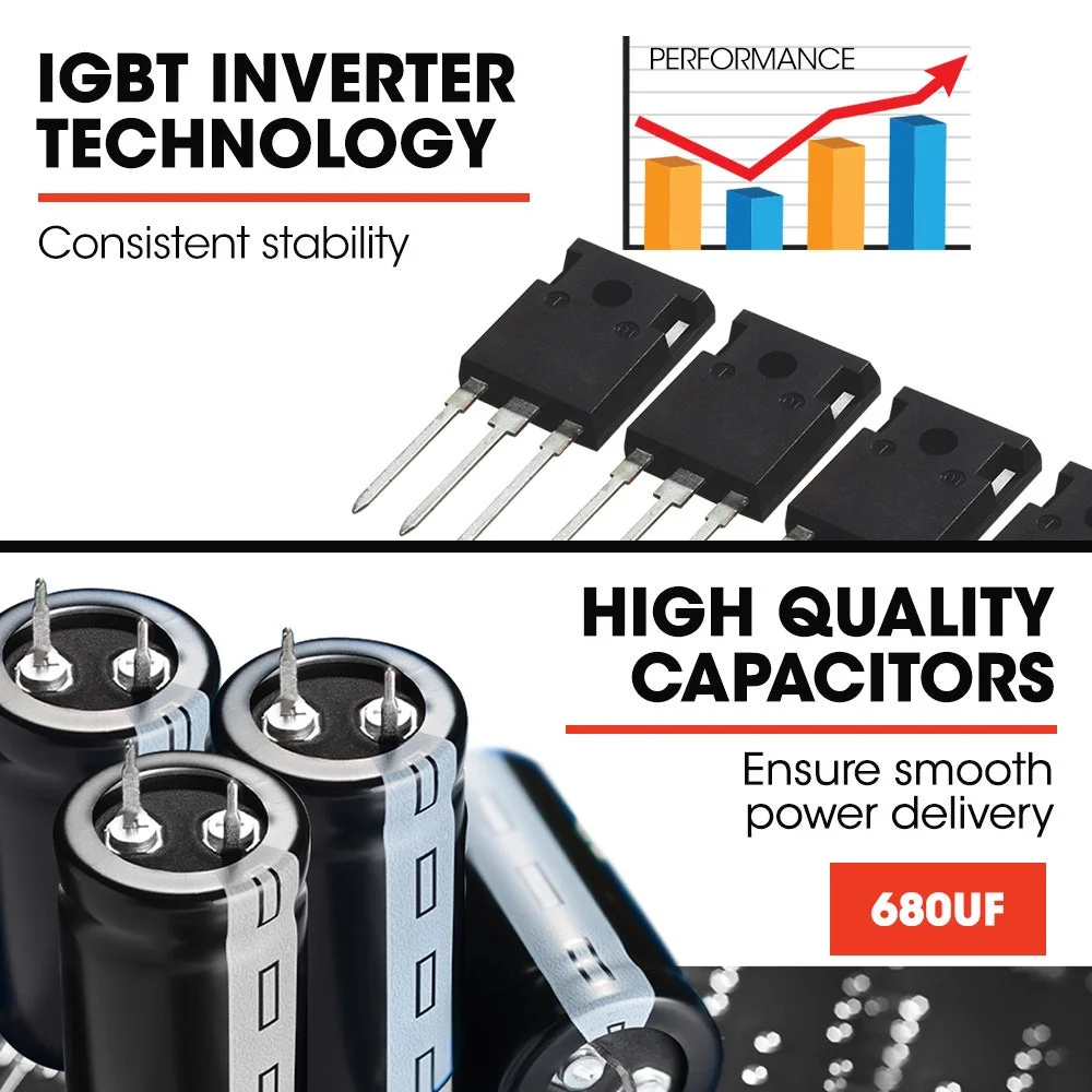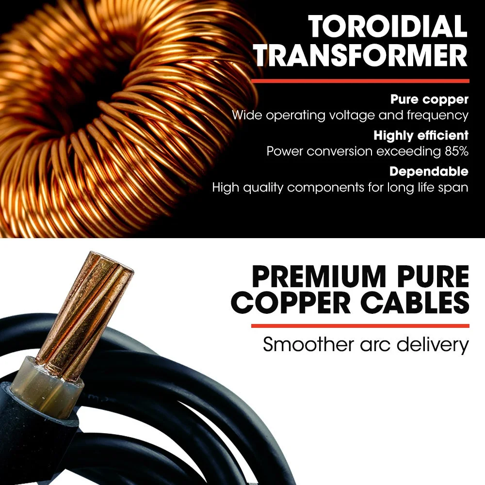 With an efficient pure copper Toroidal Transformer and output current that is adjustable between 20A and 200A, you can achieve a quality weld on a wide range of base metals; steel, stainless steel, cast iron, copper, brass, and other highly conductive metals. The high-quality transistors in the bridge combine to make a continuous current rectifier, giving high speed and precise regulation and continuity of the welding current to produce superior results with the onboard adjustable wire feed, general stick, electrode, and special-purpose rods. It is compatible with solid or flux core materials depending on welding with or without gas.