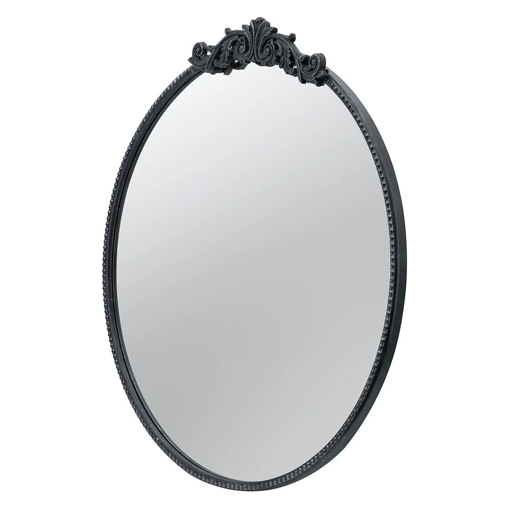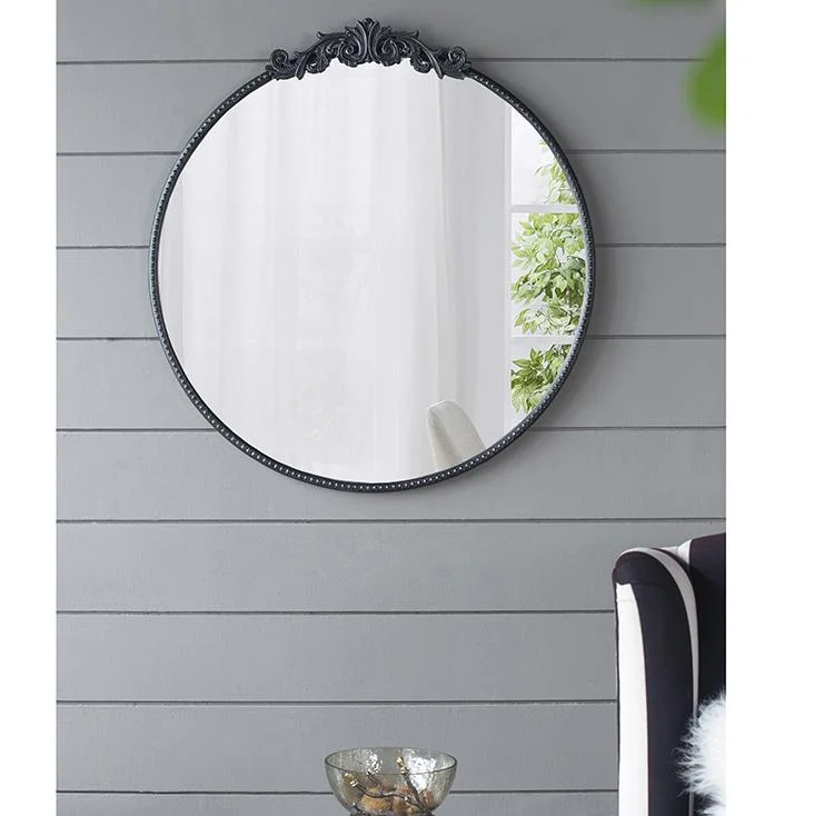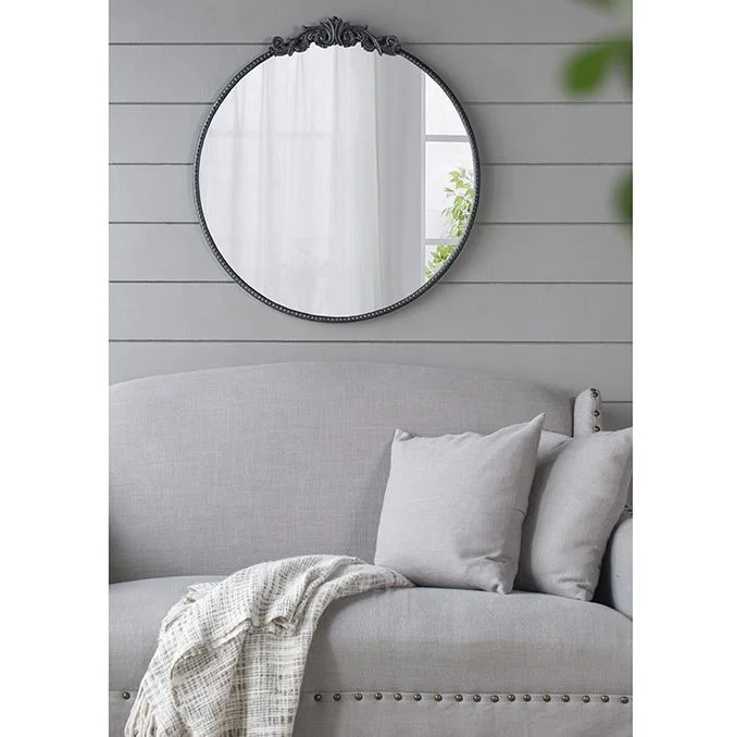 The ornate elements in the design of this piece have been inspired by the baroque period. The stylised acanthus leaf design, and continuous hammered effect around the mirrors metal frame creates maximum effect. Our round ornate metallic wall mirror will suit a variety of both modern and period-inspired spaces but will especially benefit rooms needing a decor piece that enhances and softens against sharp lines and angles.
