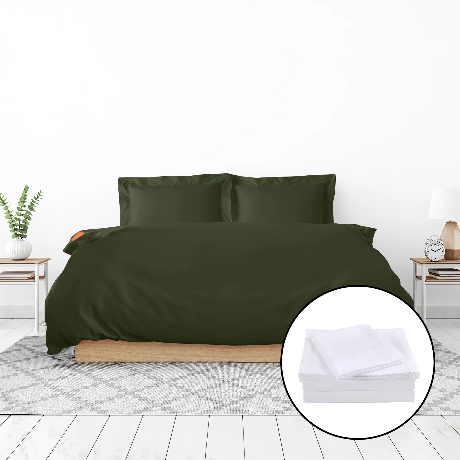 Each set comes with 1 x Flat Sheet, 1 x Fitted Sheet, 1 x Quilt Cover and 4 x Pillowcases