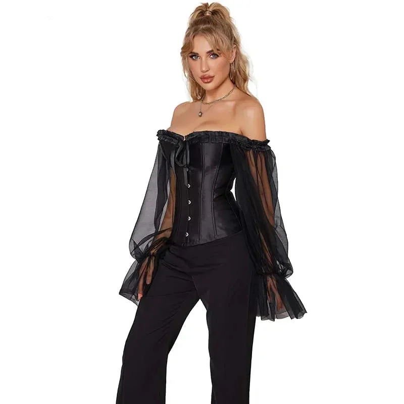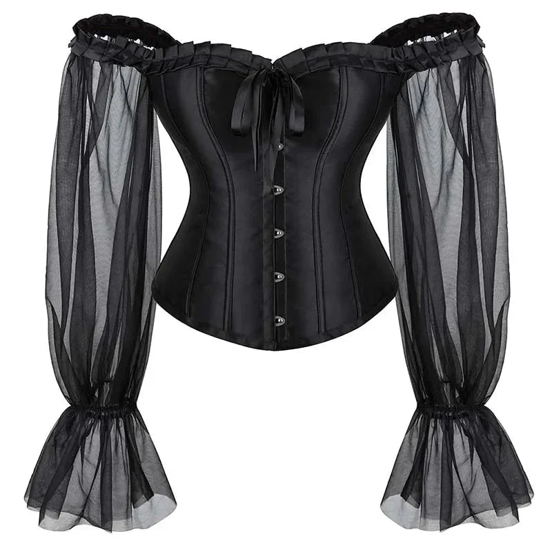 Adjustable Plus Size Steampunk Gothic Corset With G String S To 6Xl - Black - 5Xl