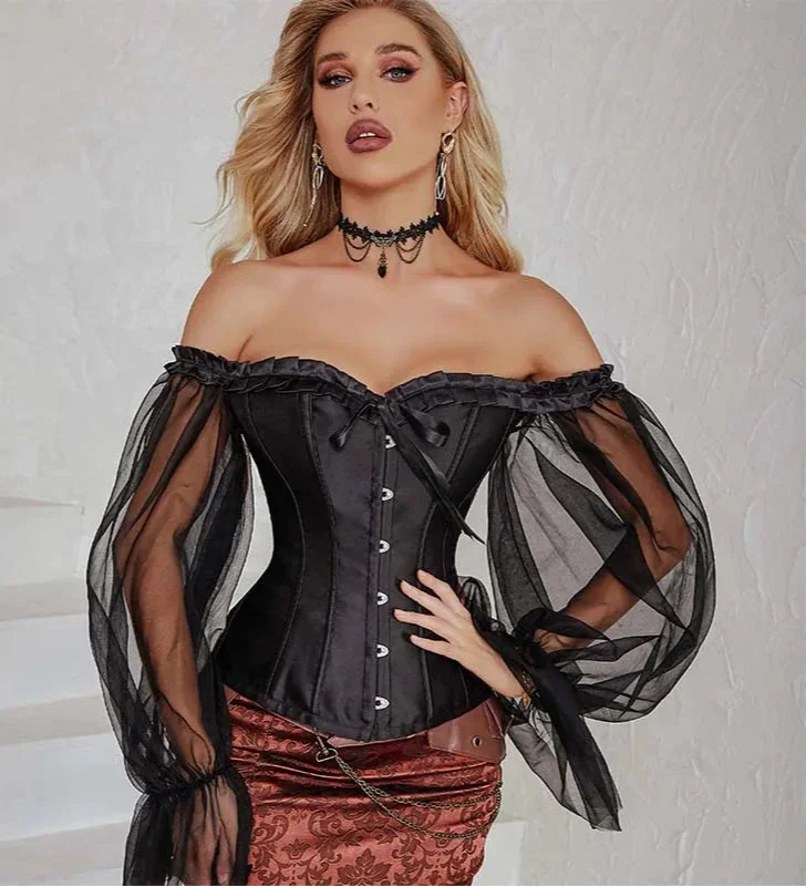 Transparent Gothic Corset With Thong Plus Size S-6Xl Mesh Net Lingerie Bustier - L