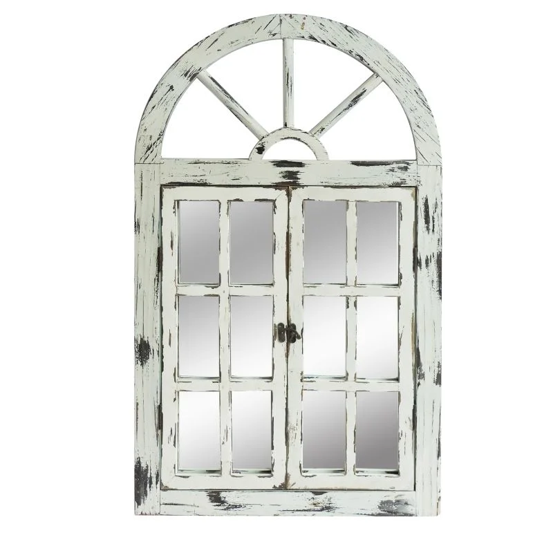 This very beautiful Window Mirror opens on both sides to reveal a mirror behind the doors. This mirror can be placed indoors or out, on a patio or covered al fresco area. On its own or several in a line, this Window Mirror looks fabulous and inviting.