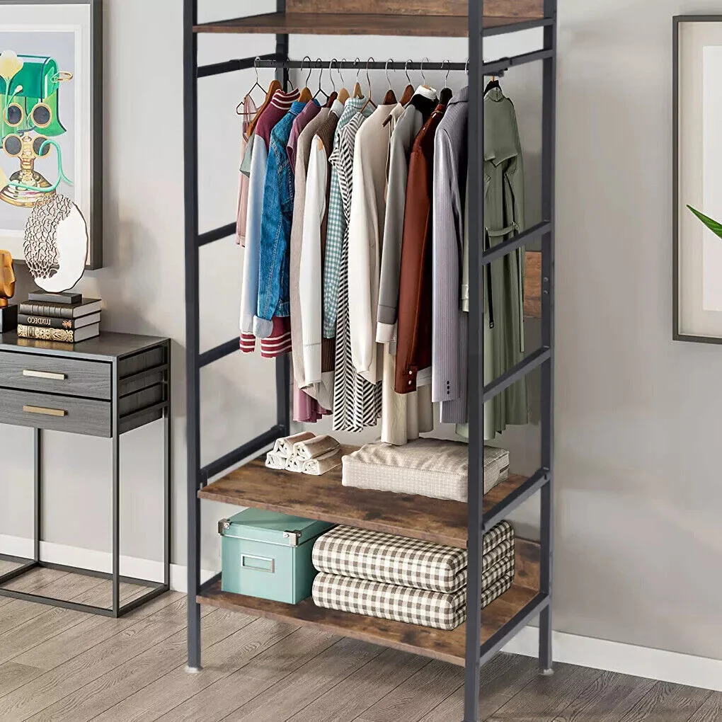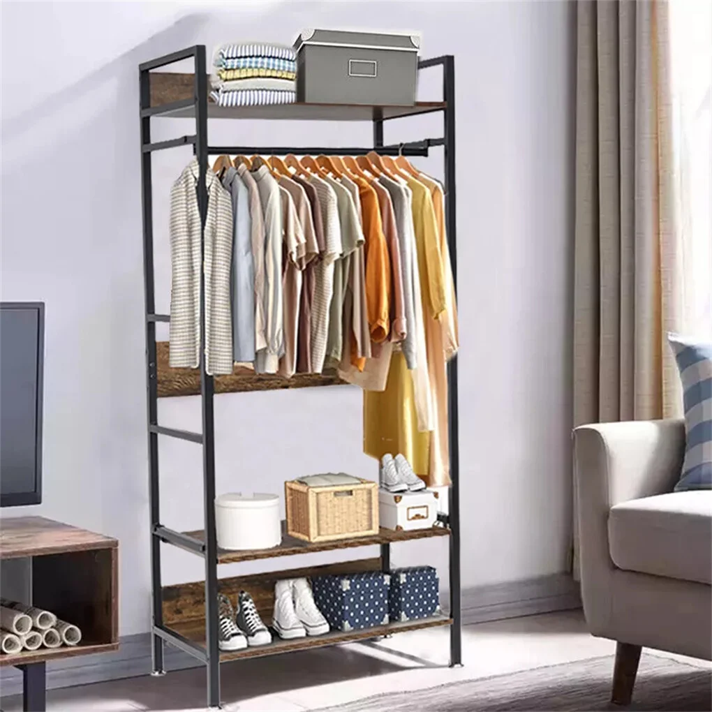 Space-saving Clothes Rack This multi-tier clothes rack in a compact size is a practical shelf for small living space,multi-tier shelves, and a hanging bar provide ample space for organizing garments and shoes without taking up too much floor space