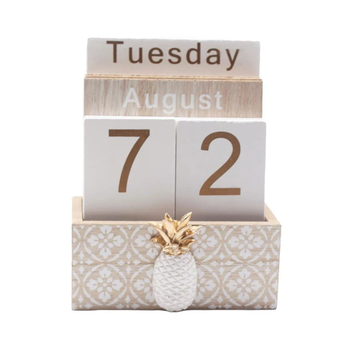 1 x Wooden Desk Calendar with interchangeable blocks for days, dates, and months