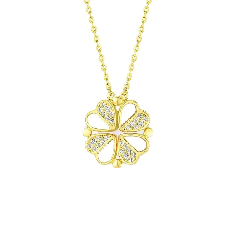 Discover two beautiful styles in one with this uniquely designed Magnetic Convertible Necklace, crafted from genuine S925 sterling silver for a lasting, non-fading finish. This clever piece can be worn as a classic four-leaf clover, a timeless symbol of good luck, or unfolded into a delicate string of four romantic hearts. The transformation is made possible by a subtle magnetic design that holds the heart-shaped petals together. Each petal is dual-sided, featuring a luminous mother-of-pearl shell inlay on one side and sparkling pavé-set stones on the other, offering a versatile and captivating look no matter how you wear it. Suspended from a delicate clavicle chain, this necklace is a perfect symbol of love and luck, making it an ideal gift or a versatile addition to your own jewelry collection.
