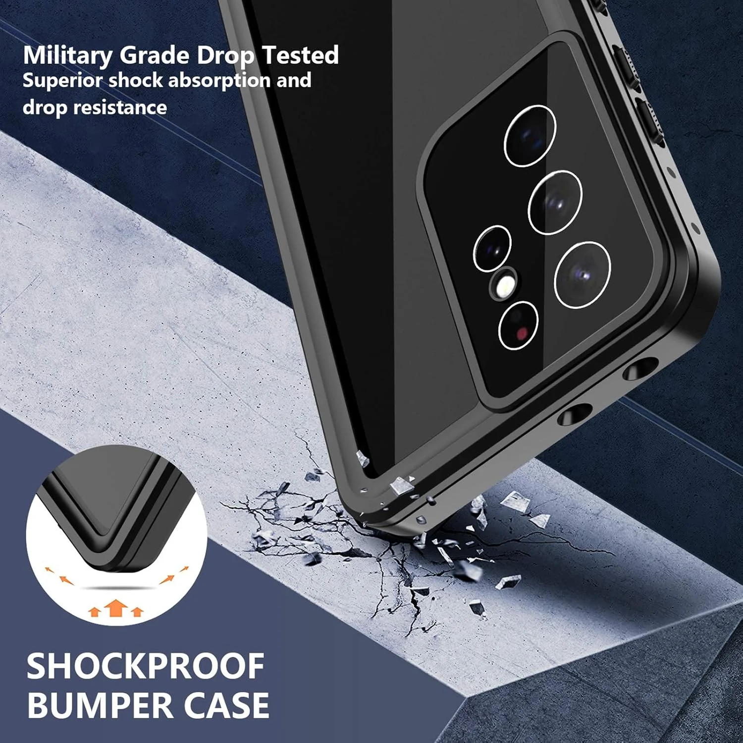 - Waterproof: IP68 Certified Waterproof case, protect your phone from water. Waterproof up to 6.6ft/2m underwater for one hour. Perfect for any underwater activities, outdoor sports and daily use. Samsung Galaxy S21 Ultra Case Waterproof Snowproof Shockproof and Dustproof case cover for Samsung Galaxy S21 Ultra Case waterproof cases Plastic PC +TPU Shell.