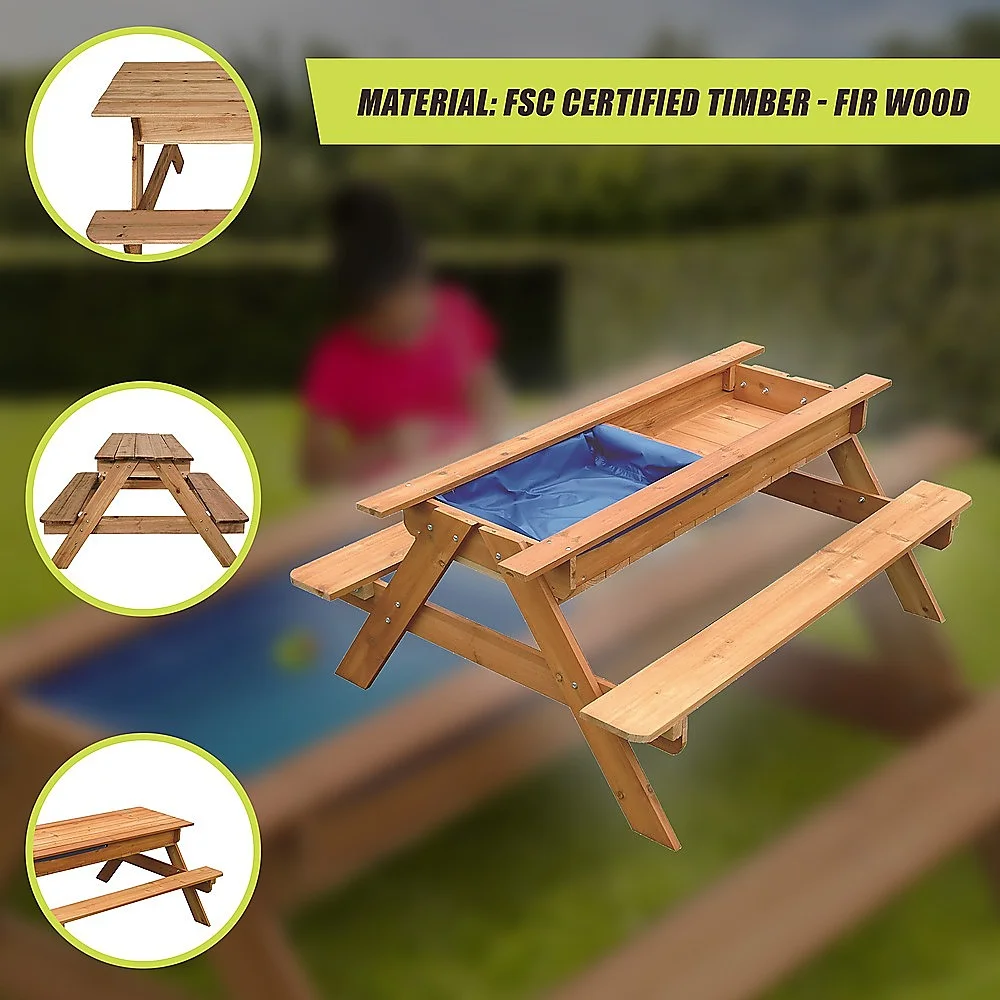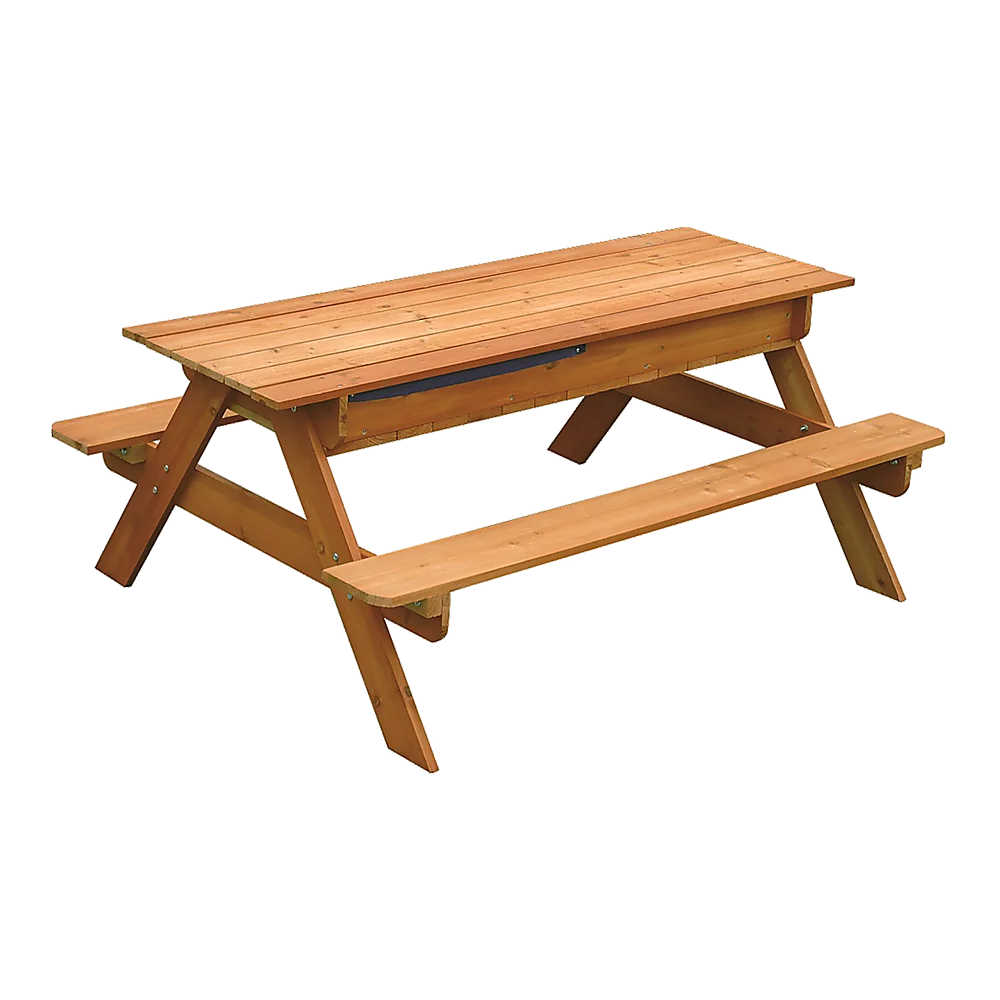 Our Sand Water Wooden Picnic Table is ideal for doing just that. This versatile toy comes in the form of a traditional wooden picnic bench. Although it may look unassuming, the centre wooden panel lifts up to reveal a sandpit and water chamber. They can be used together or separately for hours of messy fun in the sun.