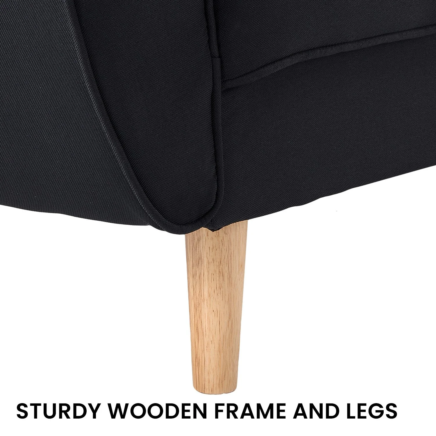 - Sturdy wooden frame with stylish legs