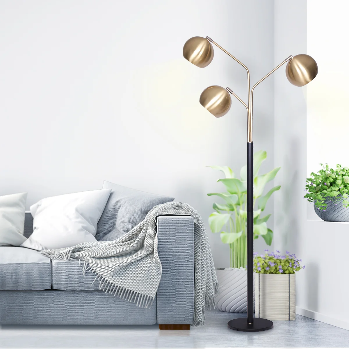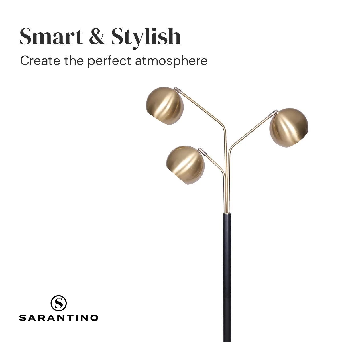 A smart and stylish way to light up a seating area, this 3-Arm Arc Lamp provides overhead lighting that can be controlled with three adjustable shade arms. The brushed gold finish is paired with a matte black base to display striking style.