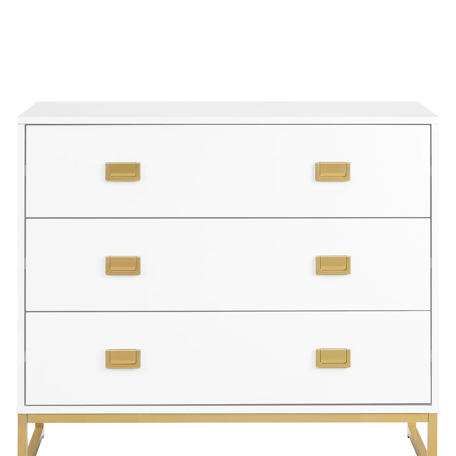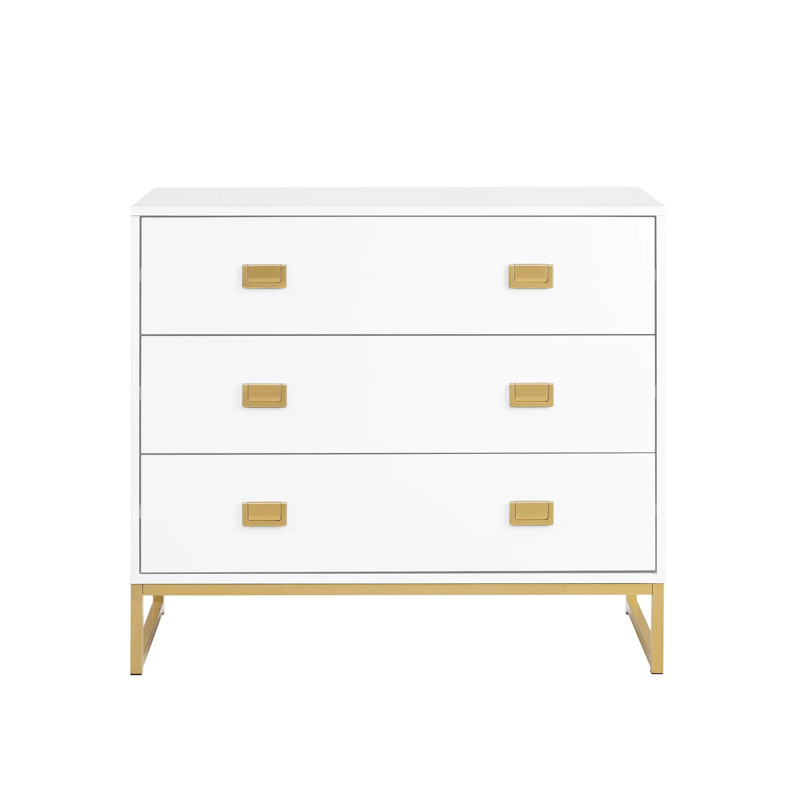 The Sarantino Amara Chest of Drawers is an elegant addition to any interior, providing the finishing touch your space is missing. Its sleek design and luxurious gold accents make it a true statement piece. With three drawers, it offers ample space for organising your essentials, complemented by sophisticated gold handles. Supported by golden metal legs, this chest exudes opulence throughout. Amara seamlessly combines style and practicality, elevating your space with its chic presence.
