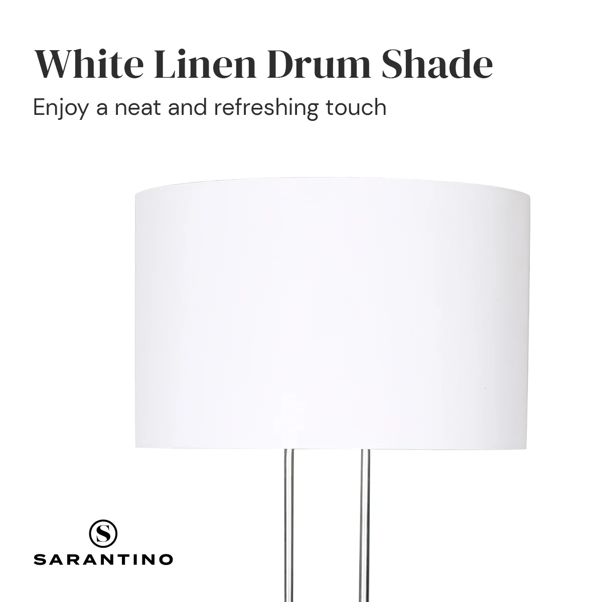 This modern floor lamp sports a brushed nickel pole and a white linen lampshade. Full of freshness, the unique design adds a sense of art and fashion to your home. Its warm lighting and elegant silhouette can match various decorating styles, such as modern, minimalist and more.