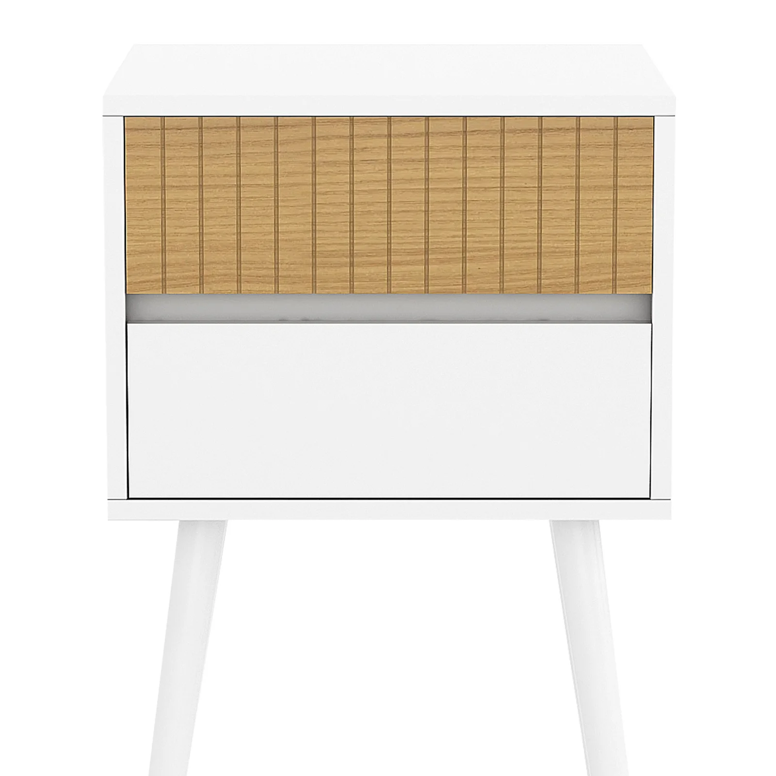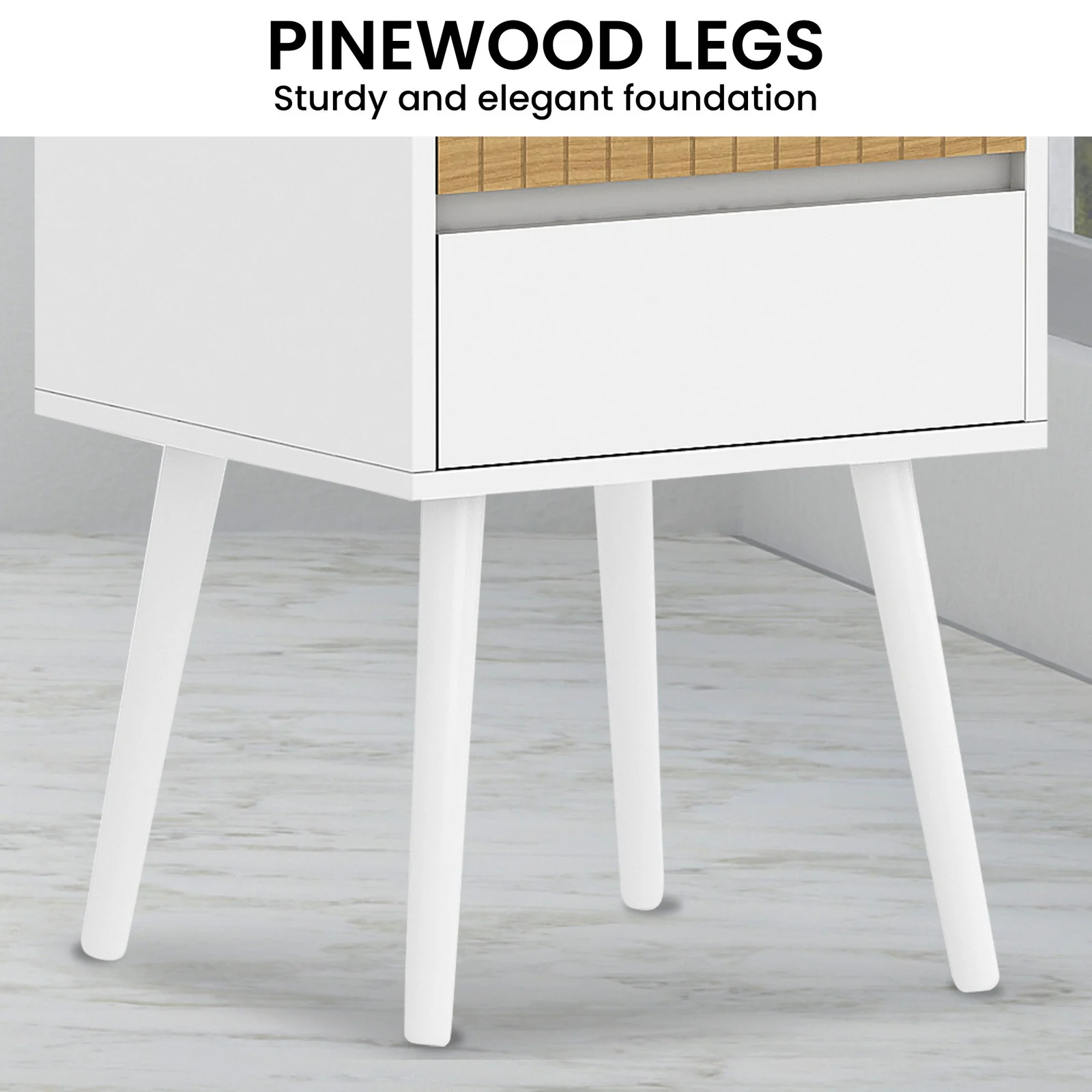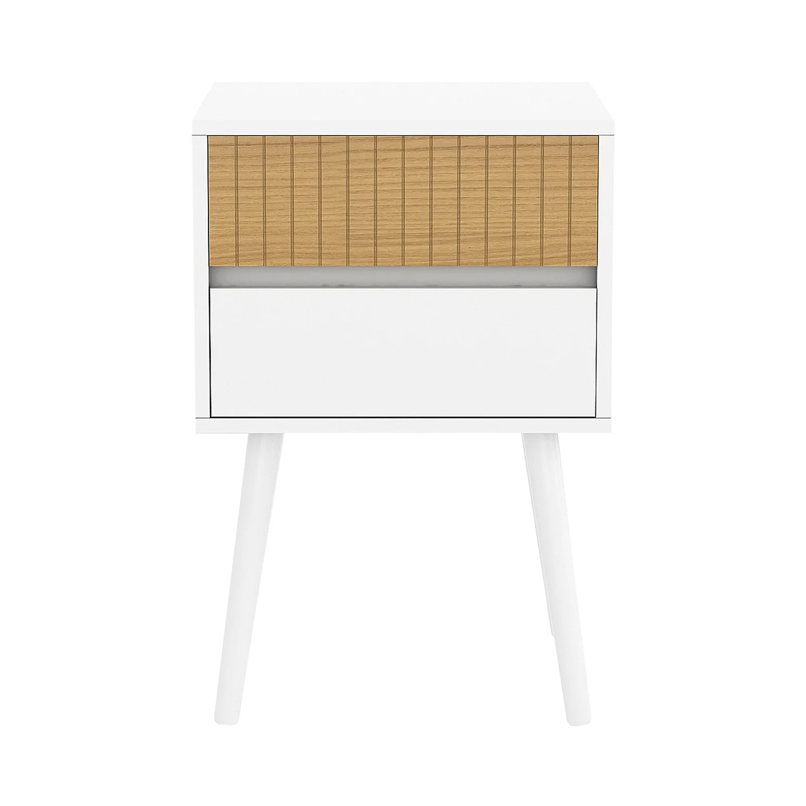 This contemporary side table by Sarantino elevates your space with a captivating blend of Scandinavian style and functional design. The two drawers offer spacious storage, while the fluted design on the top drawer cover adds a touch of artistic elegance. Supported by sturdy pinewood legs, this side table forms a strong foundation. Bring a breath of fresh, contemporary air to your home with the Clio Side Table.