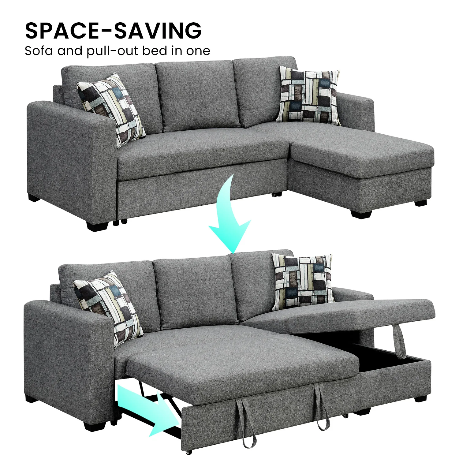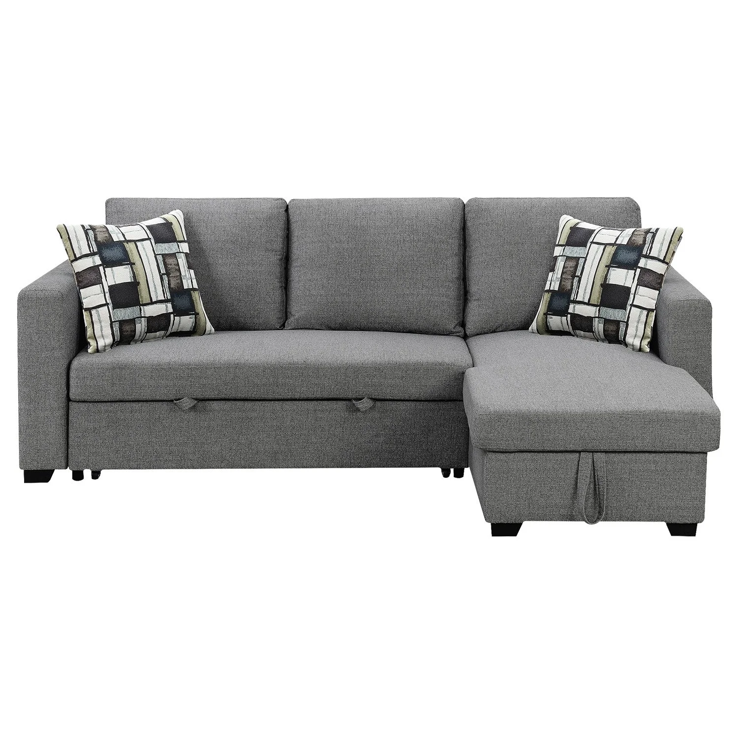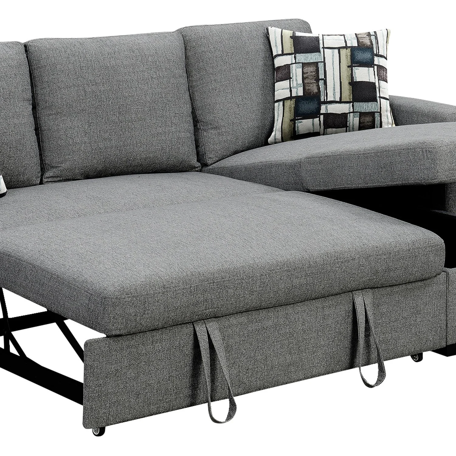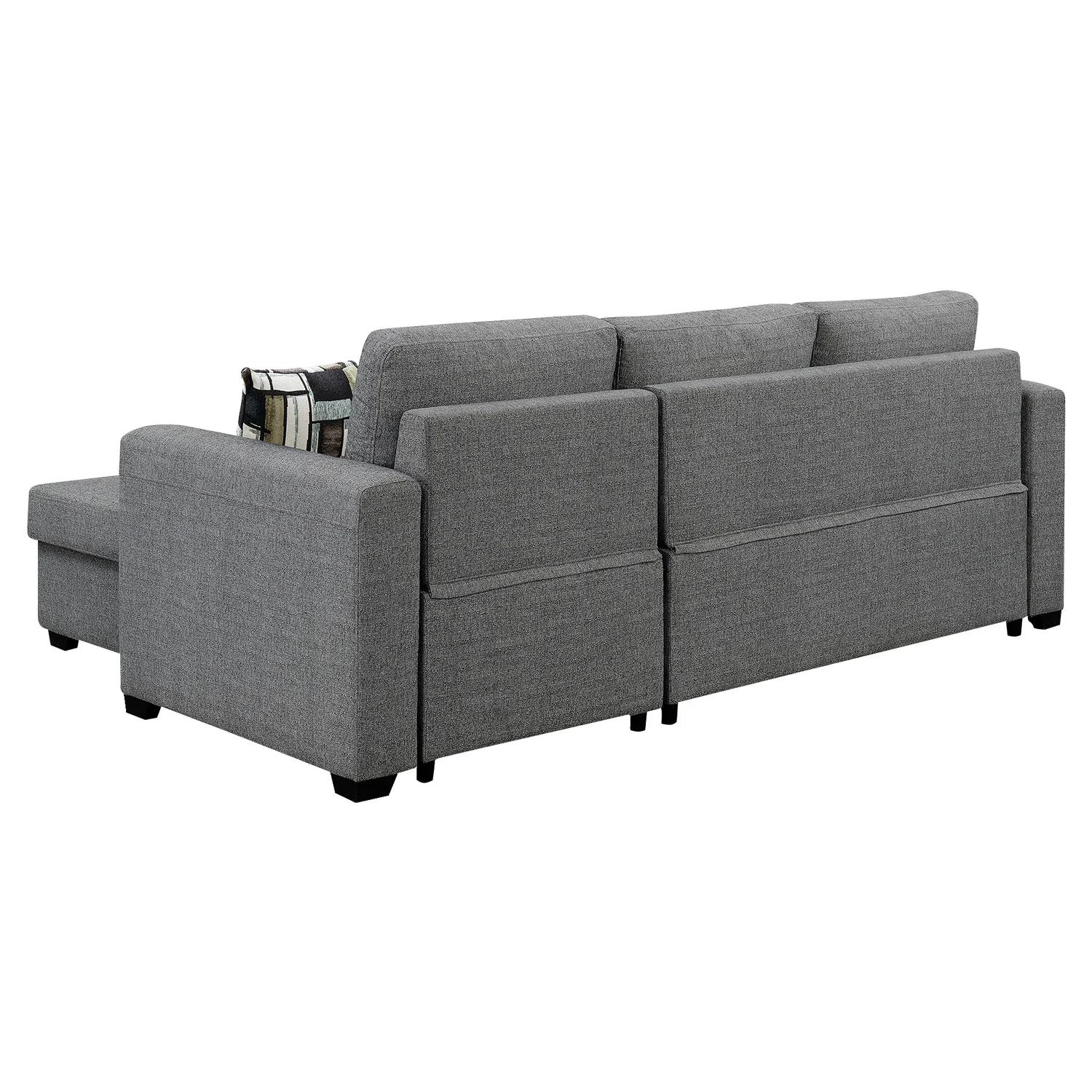 Combining contemporary style and sophistication, this corner sofa is a perfect fit for any living room. Offering practicality and convenience, this piece can also transform into a comfortable bed with a simple pull-out function. Additionally, the chaise piece of the sofa features a space for storage to help you make the most of your living space!