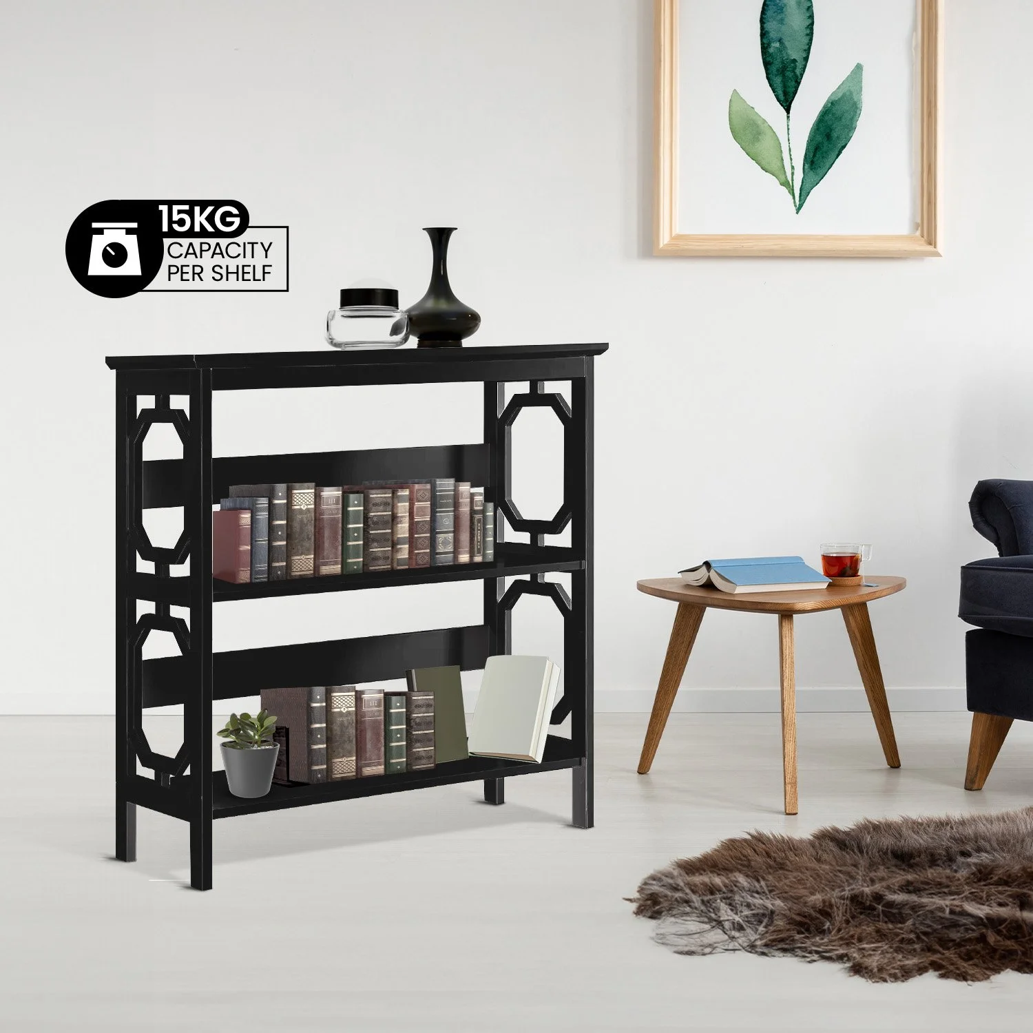 Add a touch of style and contemporary elegance to your living space with the Sarantino Laurel 3-Tier Bookcase. Its sleek and minimalist design seamlessly blends into any interior style, making it a versatile and timeless addition to your home.