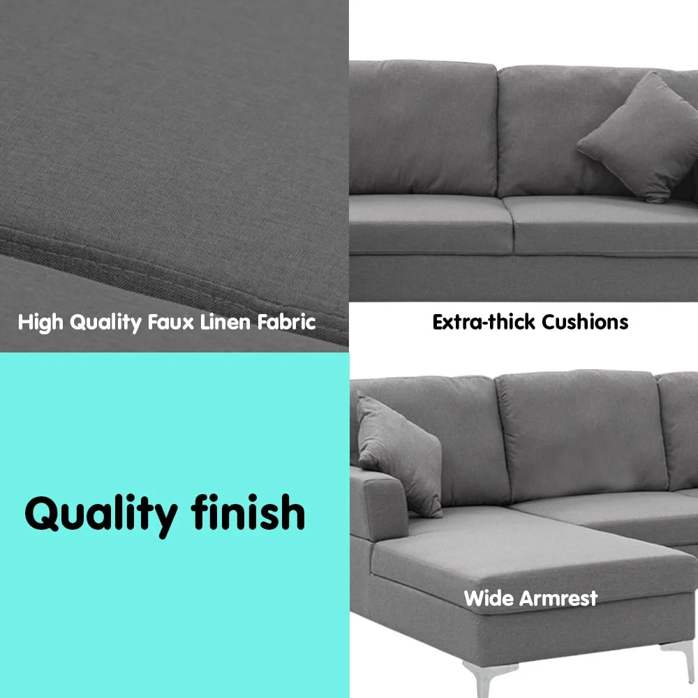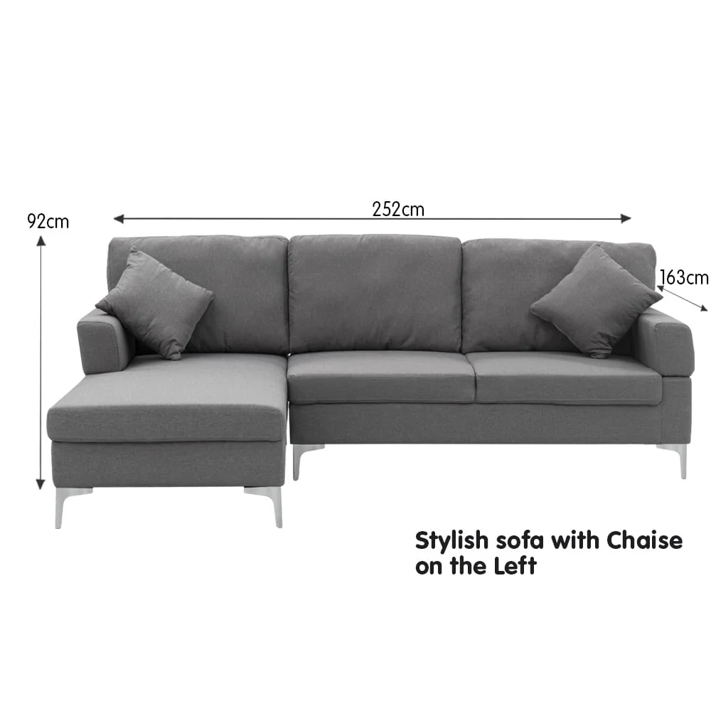 Upholstered in an easy-clean, high-grade, linen fabric with durable stitching, this 3 seater sofa with chaise gives you the contemporary and luxury look. Enjoy stretching your legs up to 130cm worth of legroom with a chaise for ultimate relaxation.