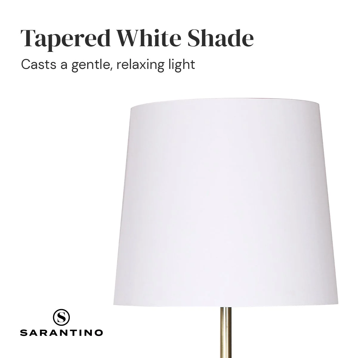 This modern floor lamp has a neat design and easily fits most decor styles from mid-century modern to traditional and contemporary. The antique brass finish pairs with the warm tone of the tapered lampshade to make you feel warm, cozy and at home in any room. The shade directs light downwards, making this lamp perfect for a reading nook. Let the shade hang over your sofa, armchair or desk for added illumination.