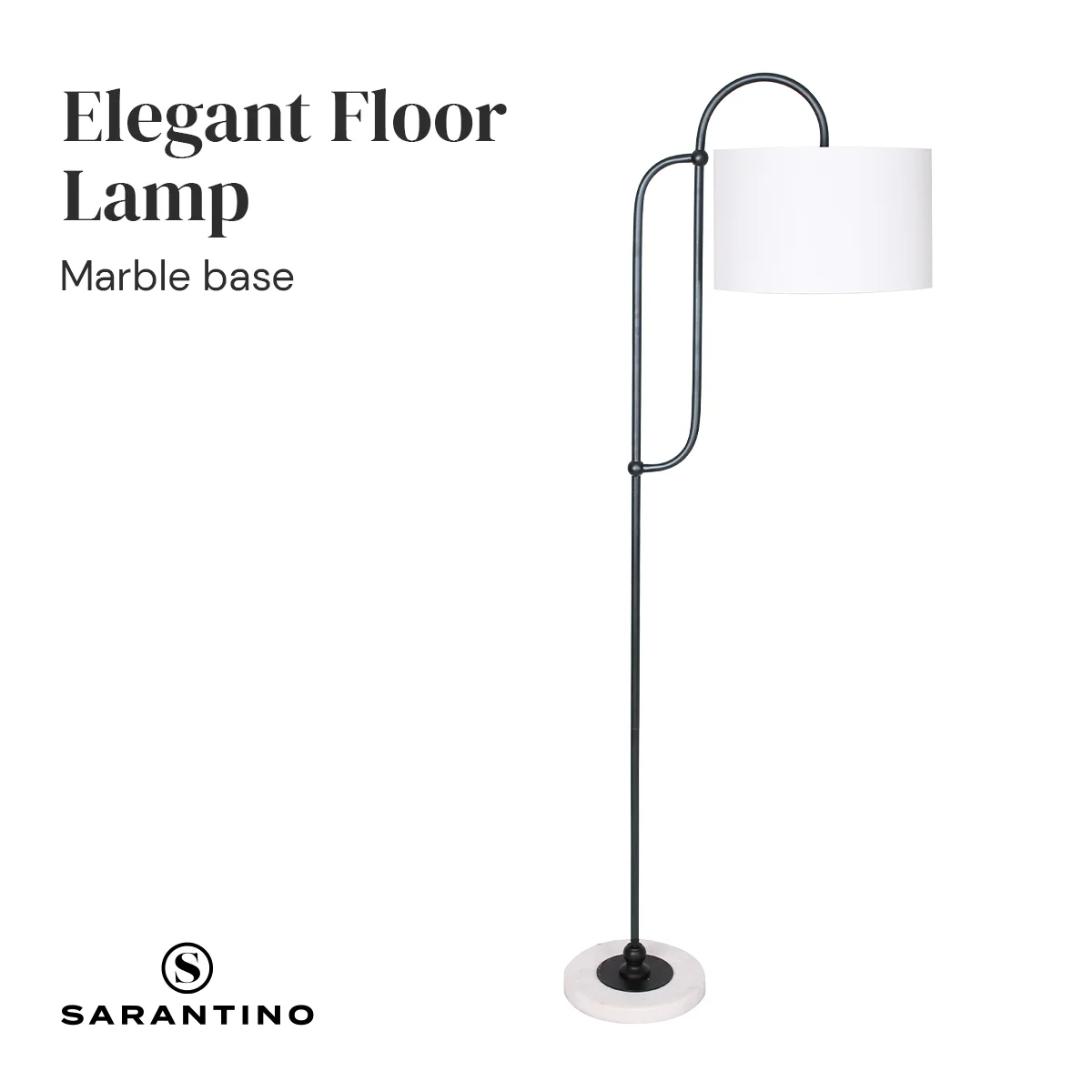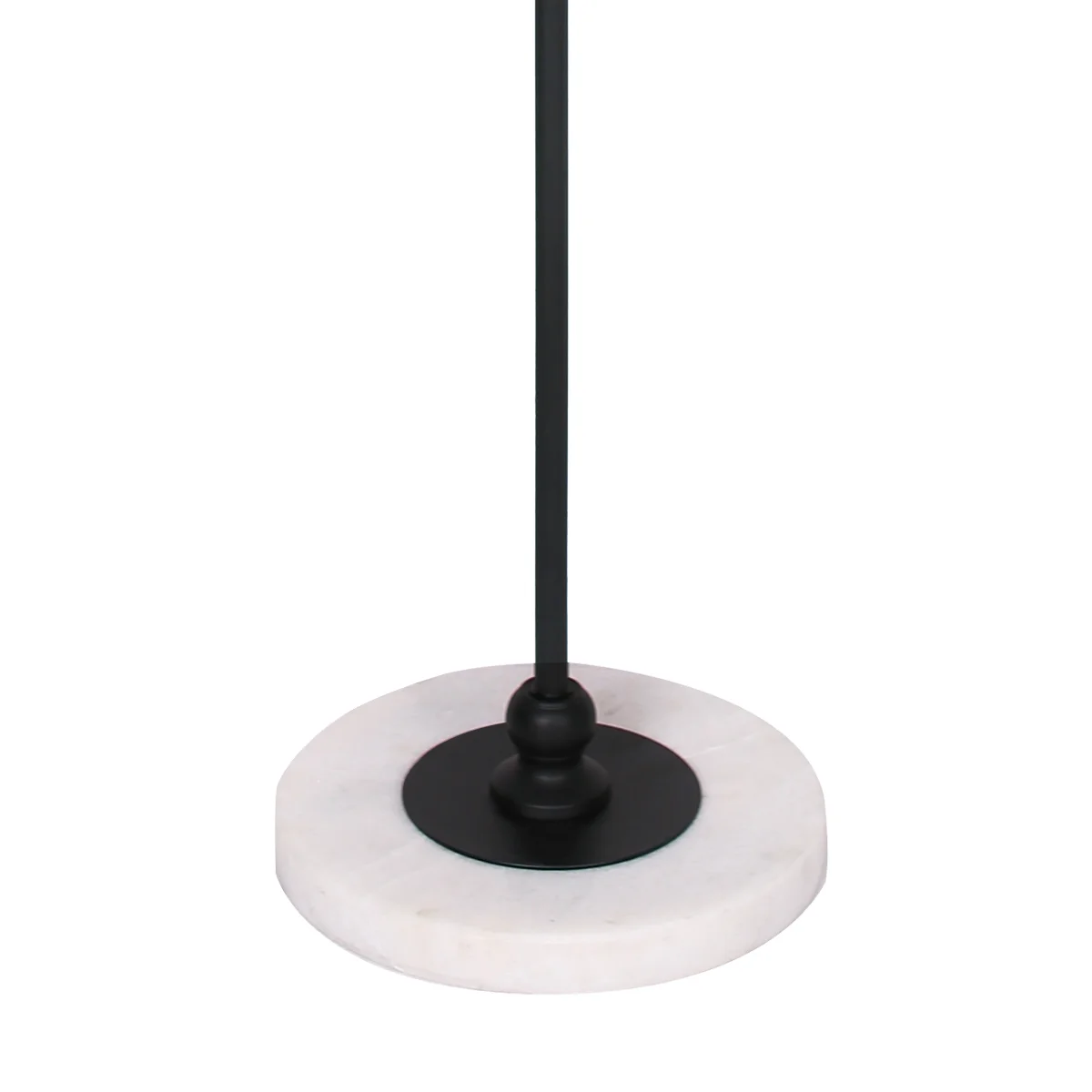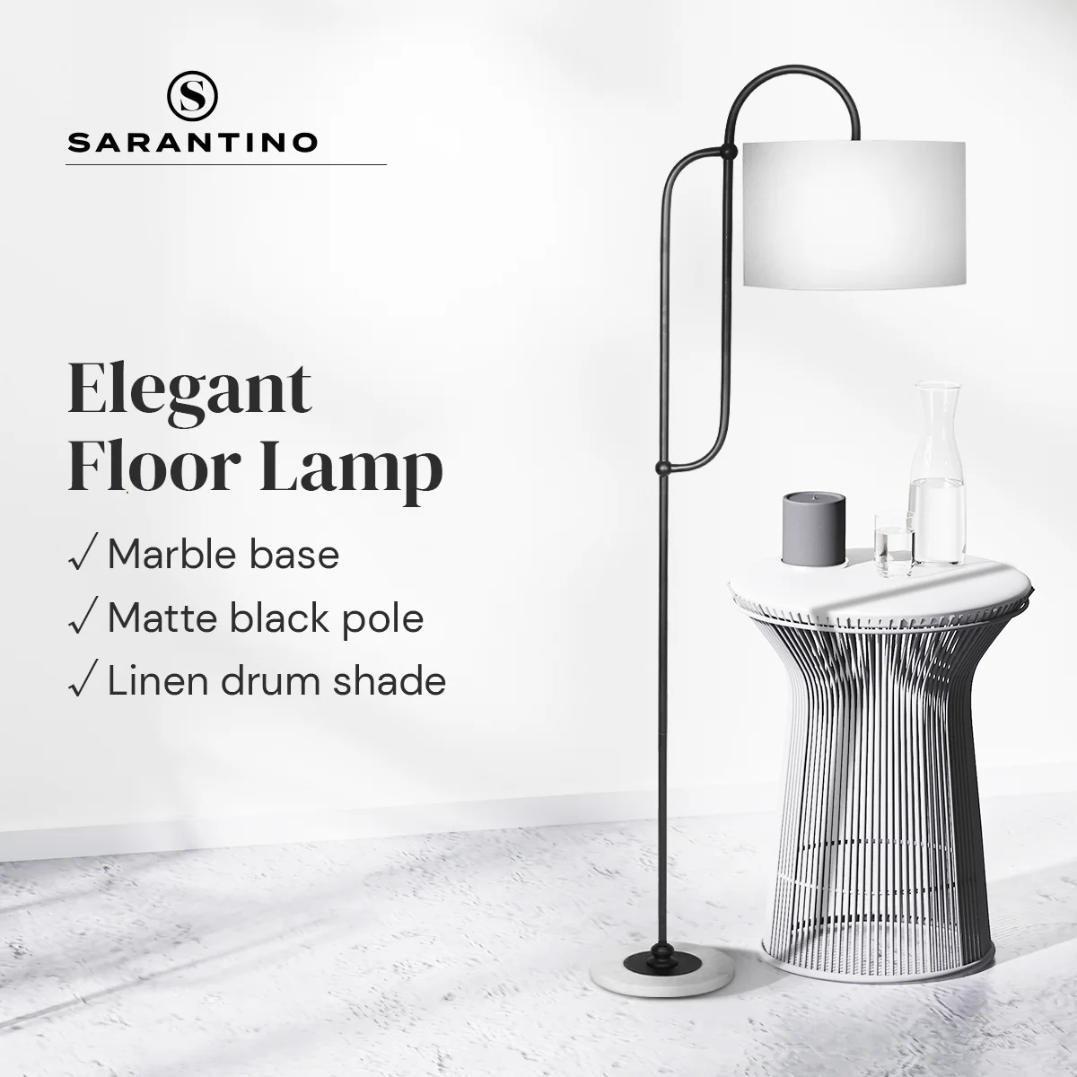 The curved post has a matte black finish and is weighted by a beautiful (and sturdy!) marble base. With a 100% cotton hardback drum shade, this piece will adorn your home for a long time.