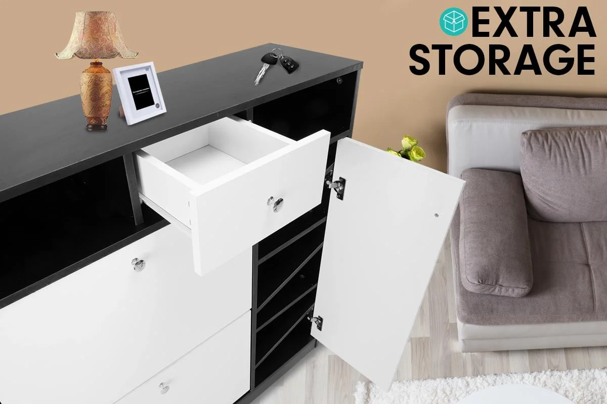 - 2 drawers with side door cabinet for shoe storage