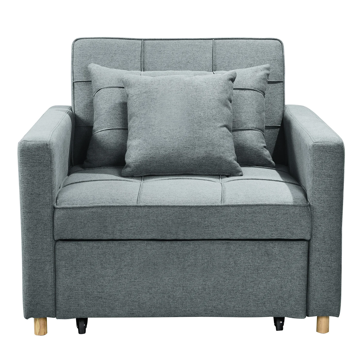 The Suri 3-in-1 Convertible Chair Bed is an elegant and modern sofa bed that can fit in any living room. With high-density cushioning, wooden legs, and a strong wooden frame, this highly durable sofa bed is perfect for everyday living. Available in three colors, this 1-seater can easily convert from a chair to a lounger or bed with a simple pull and backrest adjustments.