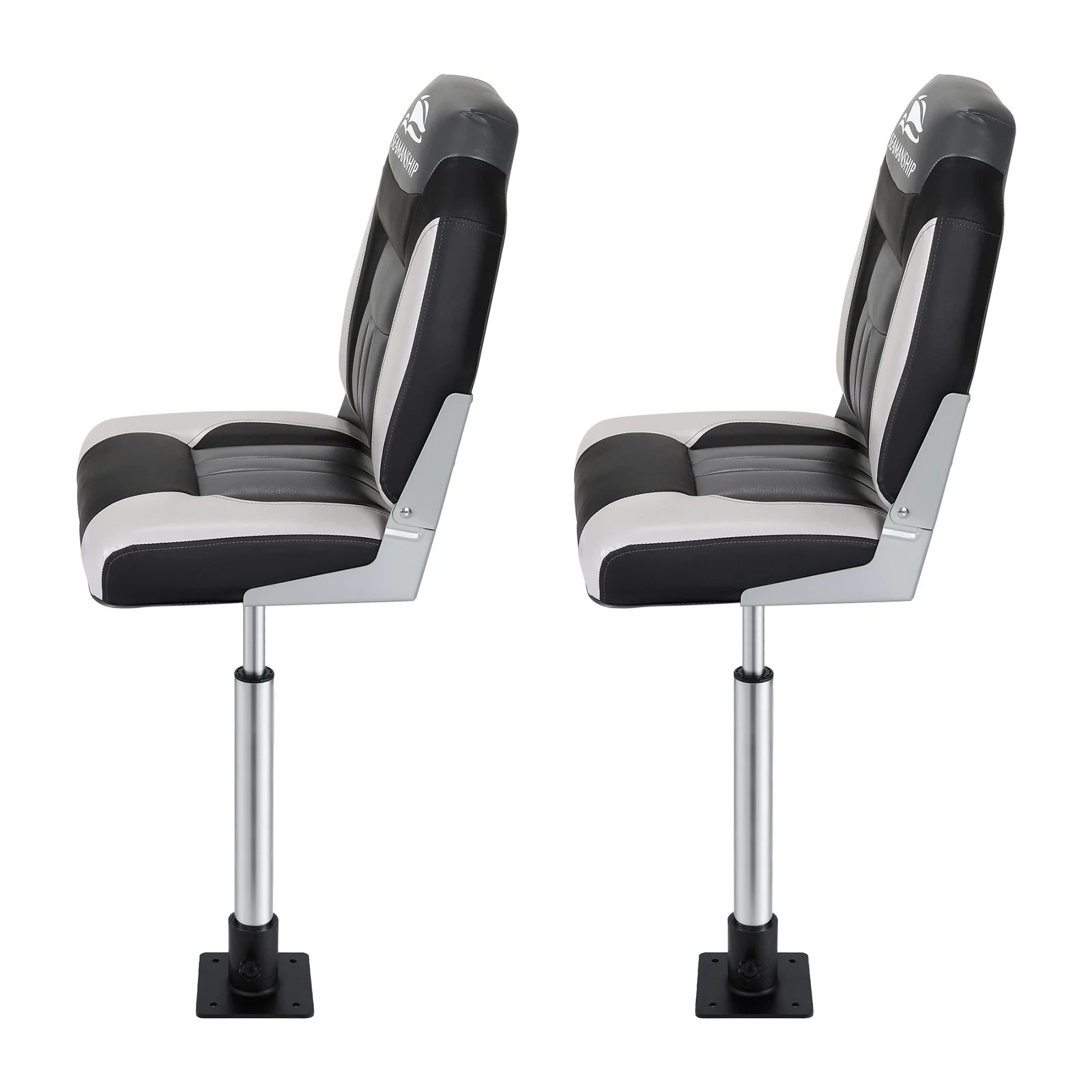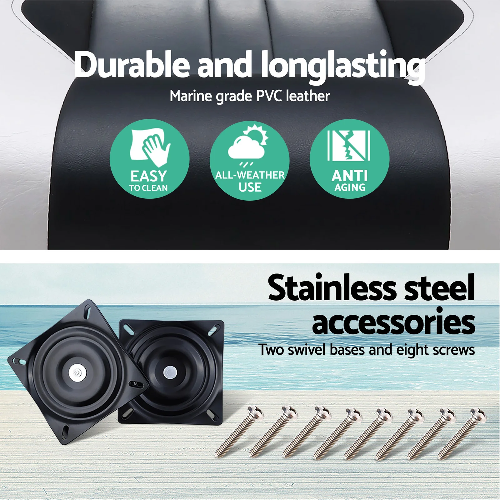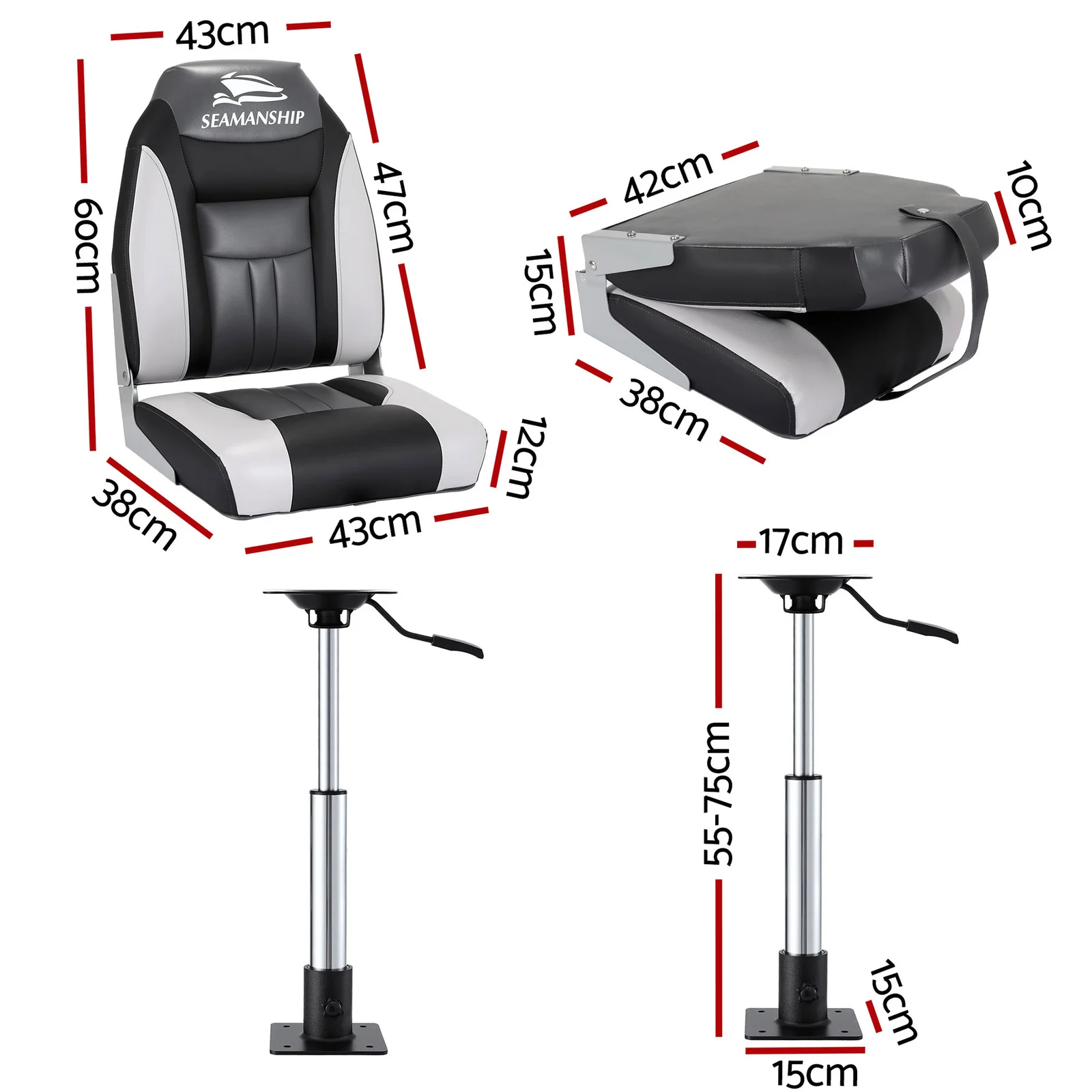 This 2-Pack Set includes two folding boat seats and two 55–75cm adjustable gas lift swivel pedestals—everything you need for professional-grade onboard seating. Enjoy your watery outing even more with our pair of Seamanship Boat Seats. Made of high quality premium plastic and UV-resistant PVC, these Boat Seats are made to perform in all weather conditions. The wind, the rain and the sun and even salt water does them no harm.
