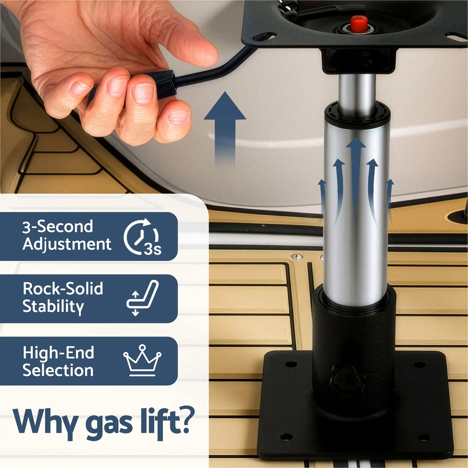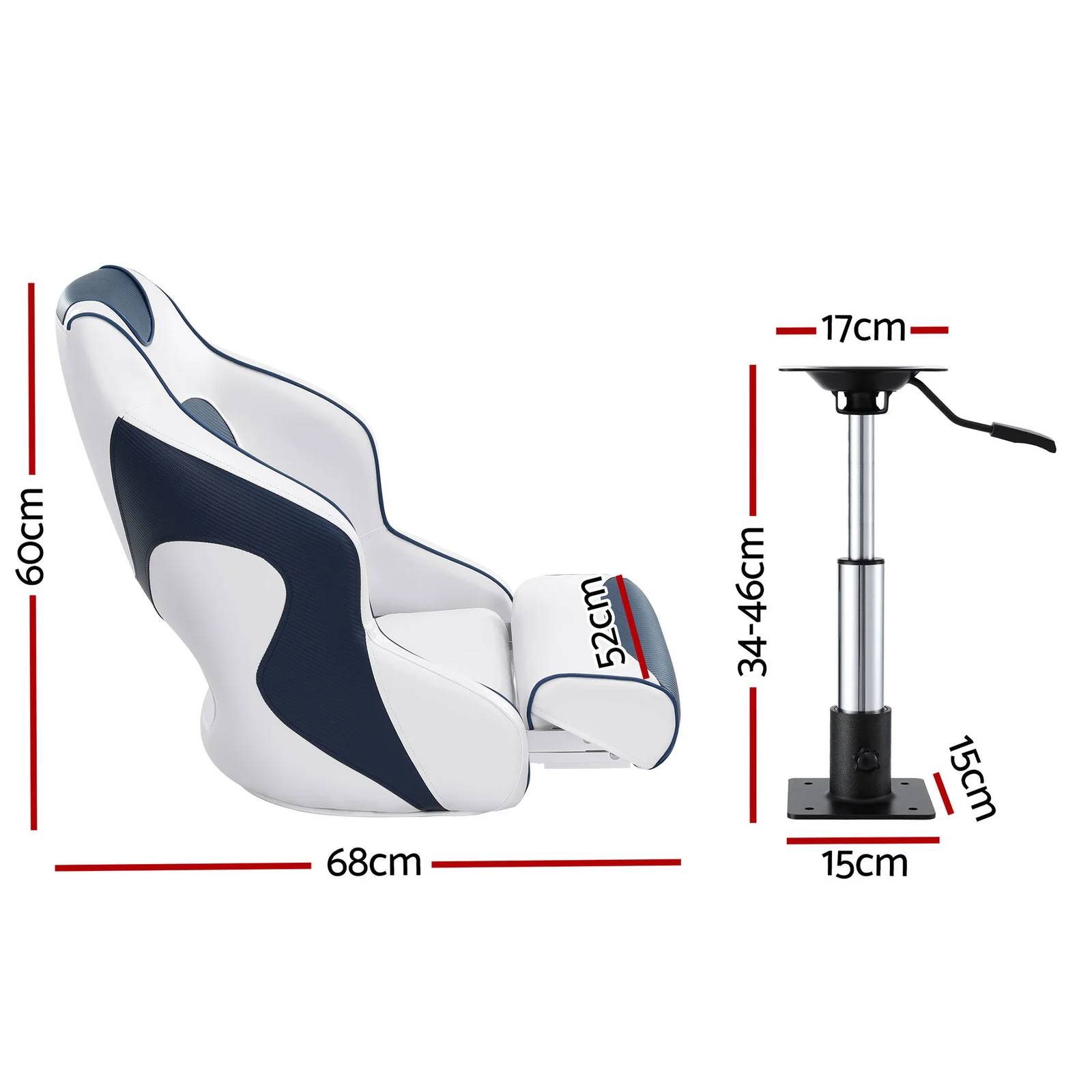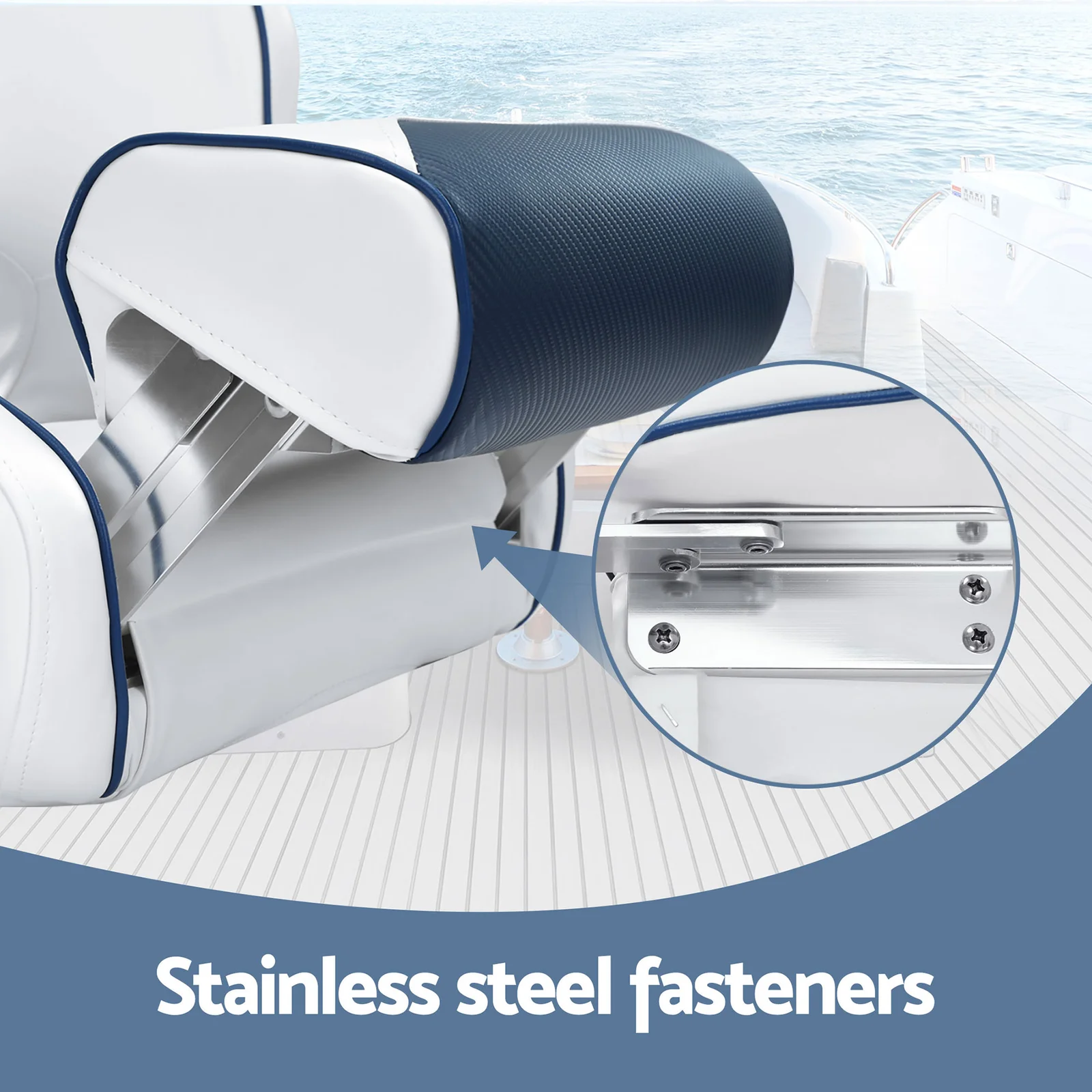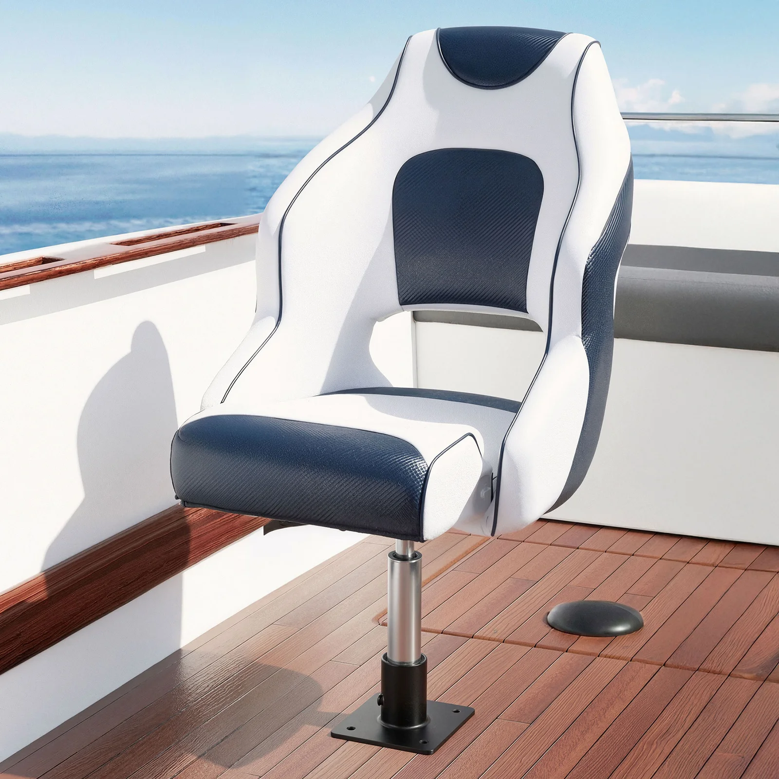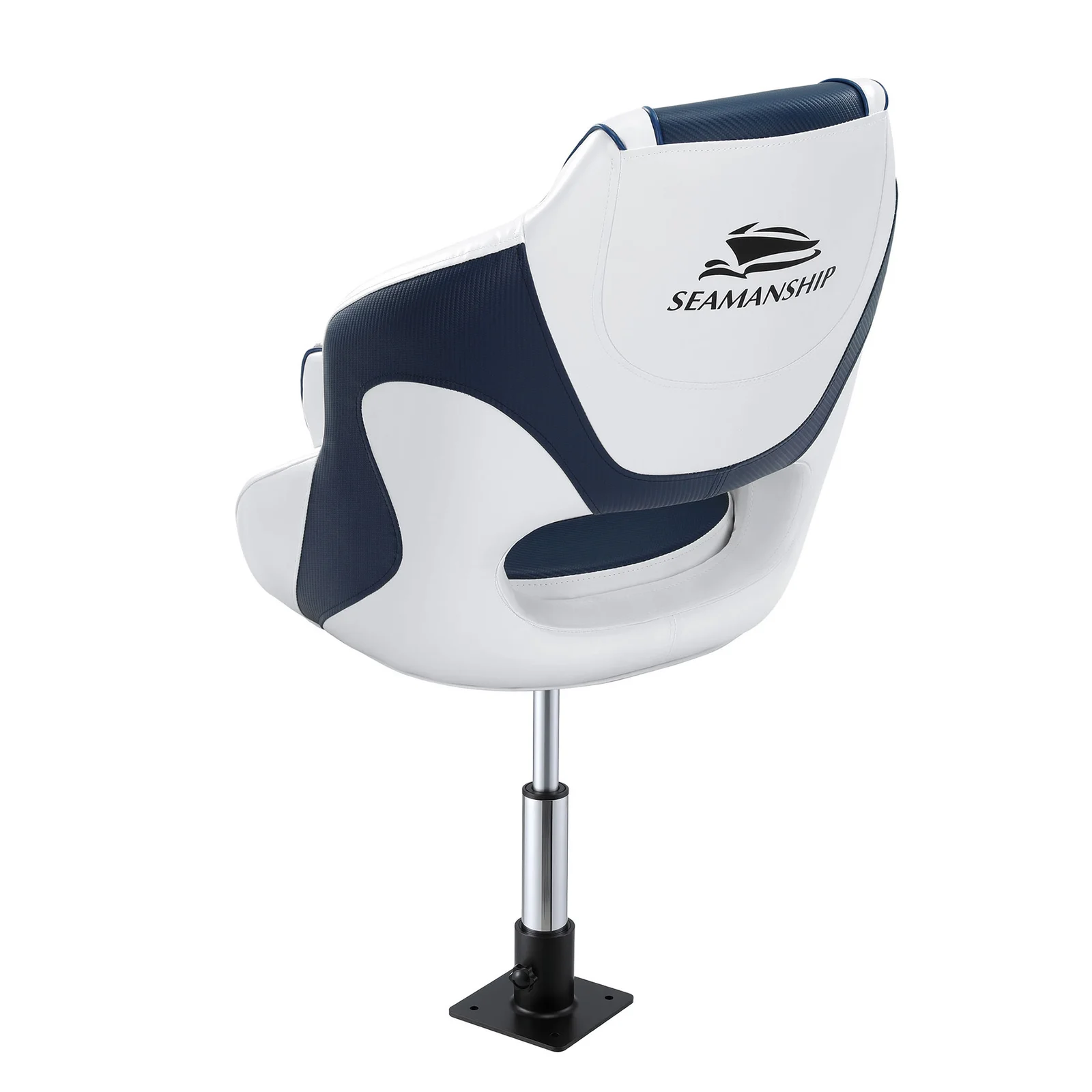 For all your seafaring adventures, you need a Seamanship Flip-up Boat Seat. This Set includes one folding boat seats and one 34–46cm adjustable gas lift swivel pedestal—everything required for professional-grade onboard seating. Crafted from high-quality PVC fabric that is saltwater and UV-resistant, our flip-up boat seat is everything you need for a day out on the water. The high-compression foam padding ensures that you can ride for hours without experiencing any discomfort. The seat is designed to fit your body's contour completely, and the stainless-steel fasteners plus rigid backrest are designed for ultimate support. The flip-up bolster ensures added seat height to meet your different sailing needs. Robust stainless-steel hardware ensures that the seat stays securely in place, even during the most intense rides. The swivel base adds an extra layer of convenience, allowing you to easily adjust your position while riding. Whether you're a seasoned sailor or just starting out, the Seamanship Flip-up Boat Seat is the perfect addition to your boat or yacht.