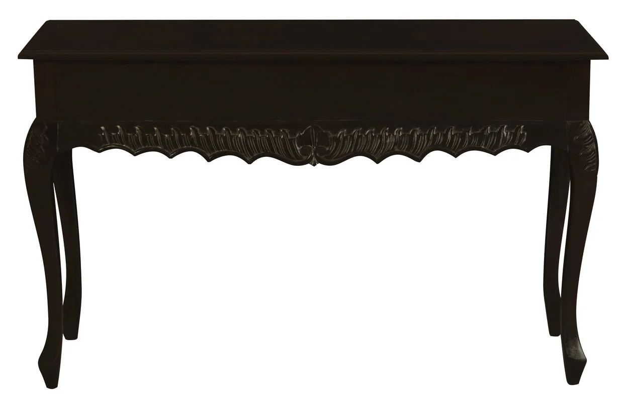 Immerse yourself in the opulent charm of the Seine 2 Drawer Carved Sofa Table, a masterpiece that blends Baroque elegance with practical functionality. Crafted from solid mahogany timber, this exquisite piece is a testament to timeless beauty and refined craftsmanship.The Seine tables intricate carvings and gracefully curved legs evoke the grandeur of 17th-century French design. Each hand-carved detail is a work of art, showcasing the skill and dedication of our artisans. The rich, dark finish of the mahogany timber adds a touch of sophistication, making it a striking addition to any room.The two spacious drawers, adorned with polished brass handles, provide ample storage for your essentials, ensuring both style and functionality. Whether used as a console table in your entryway, a statement piece in your living room, or a sophisticated addition to your bedroom, the Seine table is designed to impress.