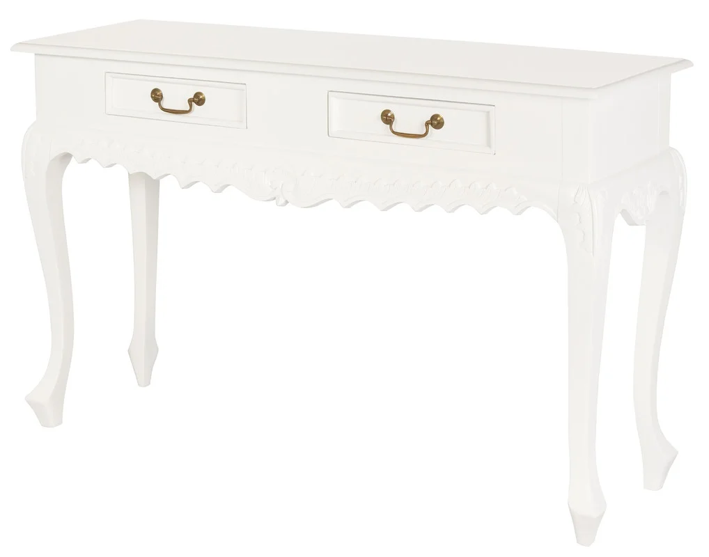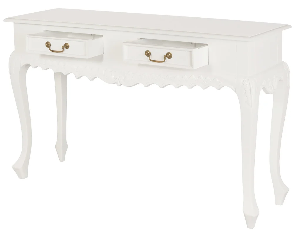 Immerse yourself in the opulent charm of the Seine 2 Drawer Carved Sofa Table, a masterpiece that blends Baroque elegance with practical functionality. Crafted from solid mahogany timber, this exquisite piece is a testament to timeless beauty and refined craftsmanship.The Seine tables intricate carvings and gracefully curved legs evoke the grandeur of 17th-century French design. Each hand-carved detail is a work of art, showcasing the skill and dedication of our artisans. The rich, dark finish of the mahogany timber adds a touch of sophistication, making it a striking addition to any room.The two spacious drawers, adorned with polished brass handles, provide ample storage for your essentials, ensuring both style and functionality. Whether used as a console table in your entryway, a statement piece in your living room, or a sophisticated addition to your bedroom, the Seine table is designed to impress.