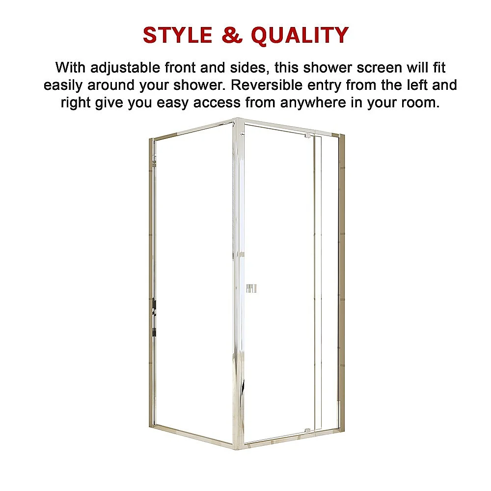 With adjustable front and sides, this shower screen will fit easily around your shower. Reversible entry from the left and right give you easy access from anywhere in your room. Make this elegant shower screen the centrepiece of your bathroom today.