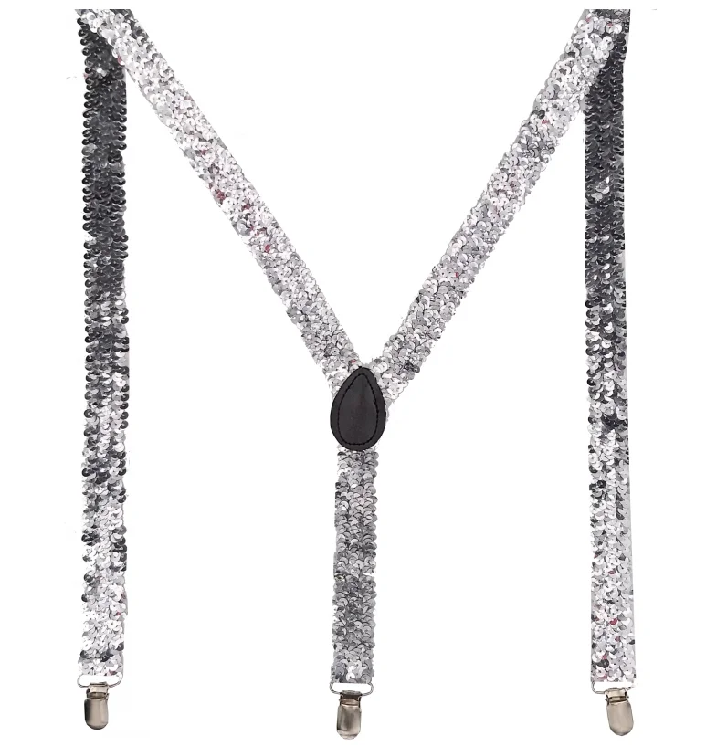 SEQUIN SUSPENDERS Unisex Adjustable Braces Clip On Elastic Y-Back Mens Womens