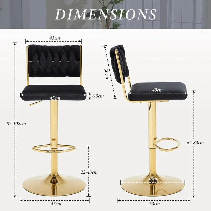 1. Woven Backrest: The beautifully crafted velvet accentuates the exclusive feel of this counter stool. The gently sloping backrest is ergonomically designed to provide good support and relieve fatigue.