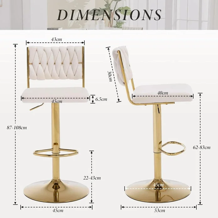 We always hope to have a chair like this---It needs both fashion and a feeling of comfort, is durable enough to accompany us for a long time, and can be suitable for various scenes, such as kitchens, shops, shopping malls, clubs, etc. In addition, quick and easy installation and adjustment are also necessary. Much more comfortable than expected with a footrest and wide seat. Plenty of padding in the seat cushion, a velvet cushion material, and the backs make you completely relaxed. It is easy to lift and lower the height, this bar stool is here to make your life easier! You will enjoy 360-degree rolling while chatting or having dinner with your family and friends. The metal part of the chair with excellent processing can meet higher standards of quality. A wide and large base makes the drafting stool more stable when you swivel. This dual-use stool gives you two chairs for the price of one. The height-adjustable swivel seat adjusts from counter to bar height with the handle located below the seat.