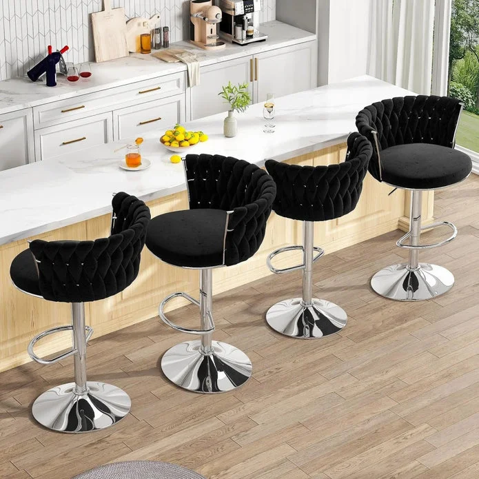 Velvet Bar Stool Set velvet fabric with silver base, bring a stylish and simple feeling to your home, they are suitable for any style of home decoration, suit for island table, dining table, bar table, counter height table etc.The high-resilience cushion and the soft back allow you to sit for a long time without getting tired, Widened base, can bear up to 120kg, smooth surface, very easy to clean!It is height adjustable and can be rotated 360°, making it easy for you to chat with your friends!
