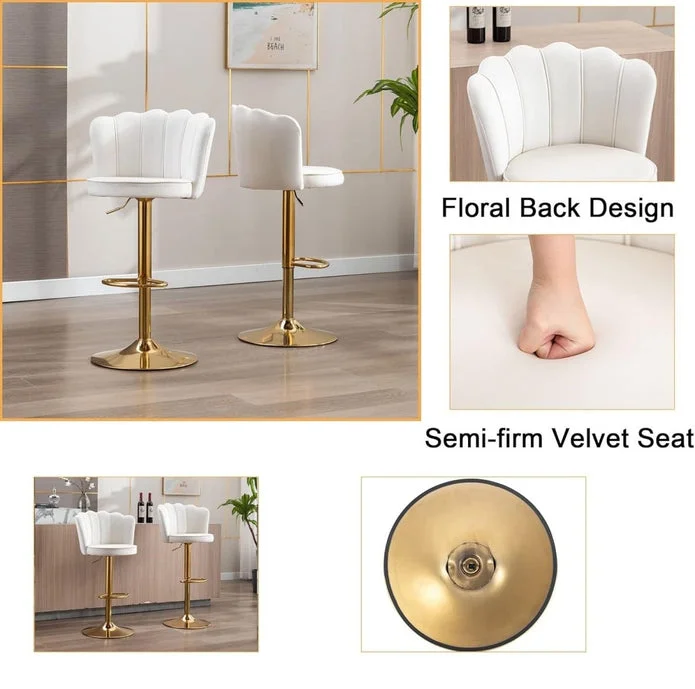 We always hope to have a chair like this---It needs both fashion and a feeling of comfort, is durable enough to accompany us for a long time, and can be suitable for various scenes, such as kitchens, shops, shopping malls, clubs, etc. In addition, quick and easy installation and adjustment are also necessary. Much more comfortable than expected with a footrest and wide seat. Plenty of padding in the seat cushion, a velvet cushion material, and the backs make you completely relaxed. It is easy to lift and lower the height, this bar stool is here to make your life easier! You will enjoy 360-degree rolling while chatting or having dinner with your family and friends. The metal part of the chair with excellent processing can meet higher standards of quality. A wide and large base makes the drafting stool more stable when you swivel. This dual-use stool gives you two chairs for the price of one. The height-adjustable swivel seat adjusts from counter to bar height with the handle located below the seat.