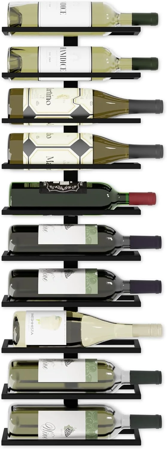 - SPACE-SAVING WALL-MOUNTED DESIGN: This metal wall wine rack holds up to 10 wine bottles, perfect for maximizing vertical storage space in your kitchen,home bar,pantry, or wine cellar. The wall-mounted design saves floor space, allowing you to display and organize your wine collection in a sleek and efficient way.